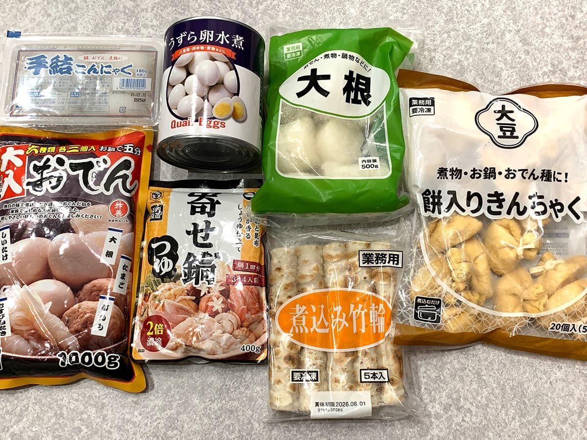 おでんは家庭ごとに具材の種類も異なる料理ですよね。業務スーパーにはさまざまな具材が売られているので、ご家庭に合ったおでんを作ることも可能!