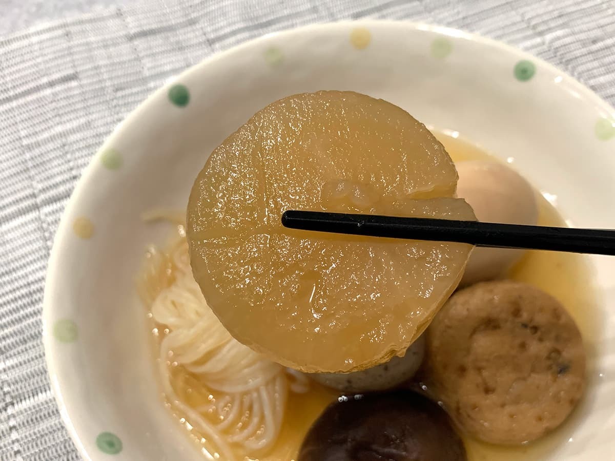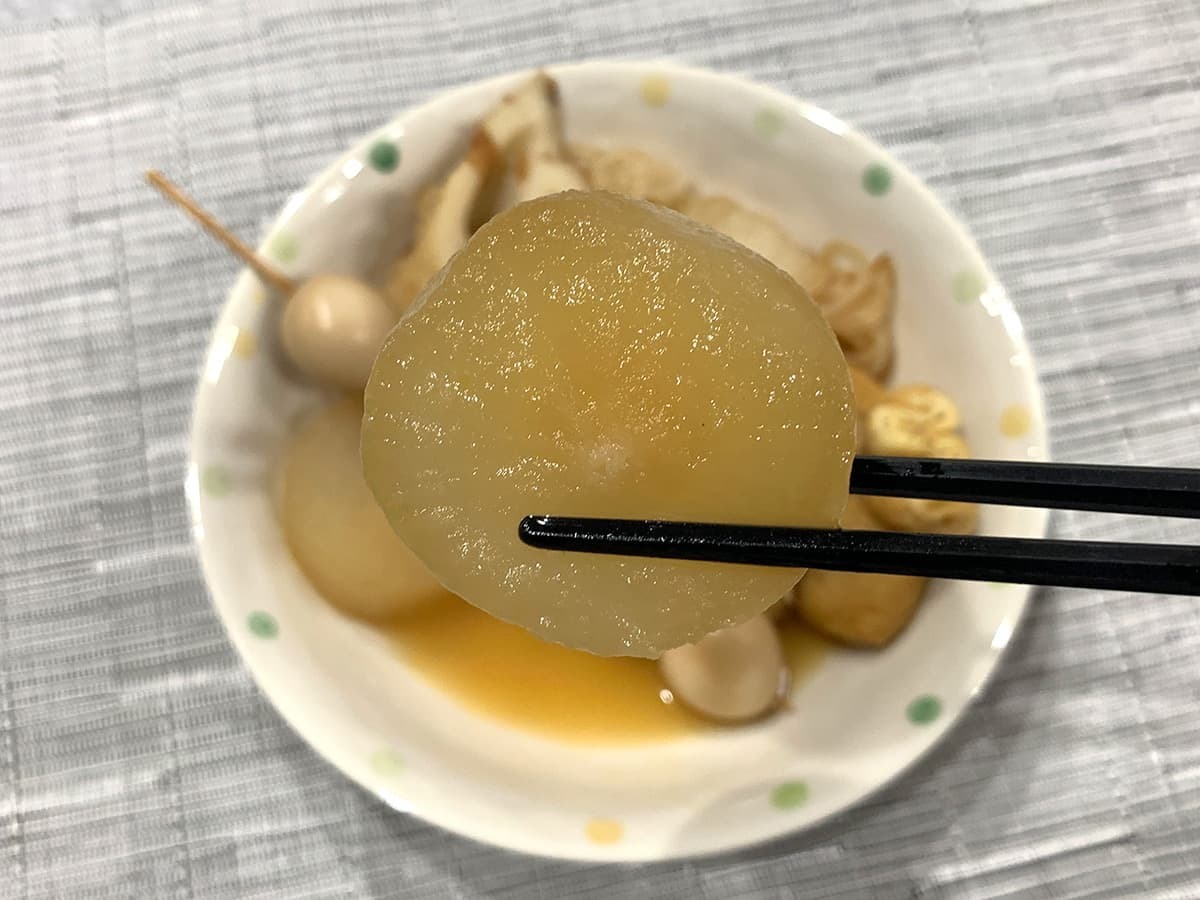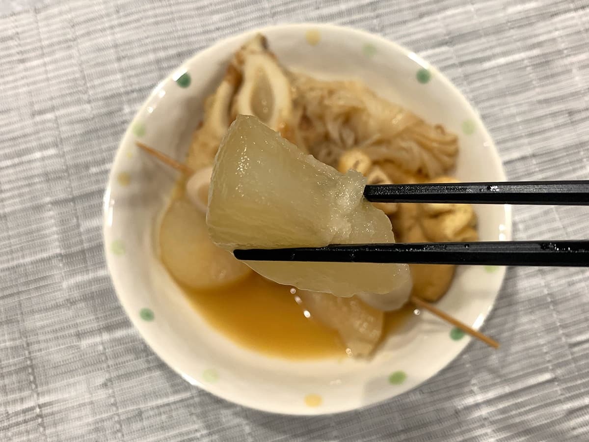 おでんのダシで大根をじっくり煮込み、実食してみました。