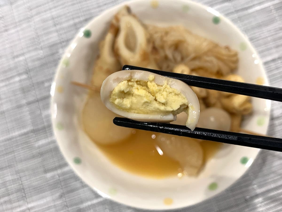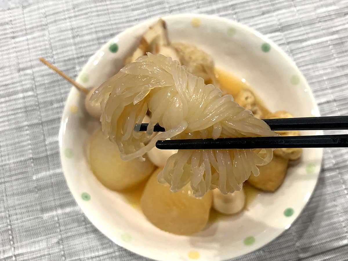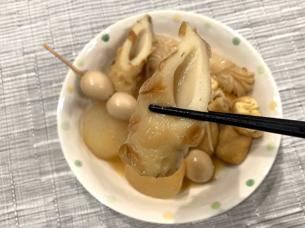 弾力のあるプルプル食感が楽しい具材。ダシはそれほど染み込んでいないものの、周りに付いたダシだけでも十分旨味を味わえます。