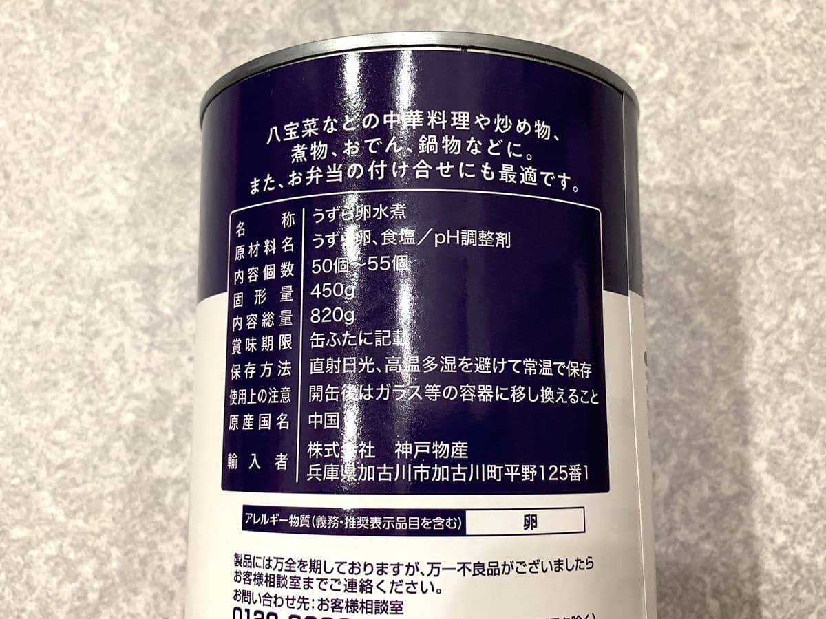 内容量は450gで、50~55個のうずら卵が入っています。たっぷり大容量で、おでん以外に八宝菜などでも活用できそうです♪