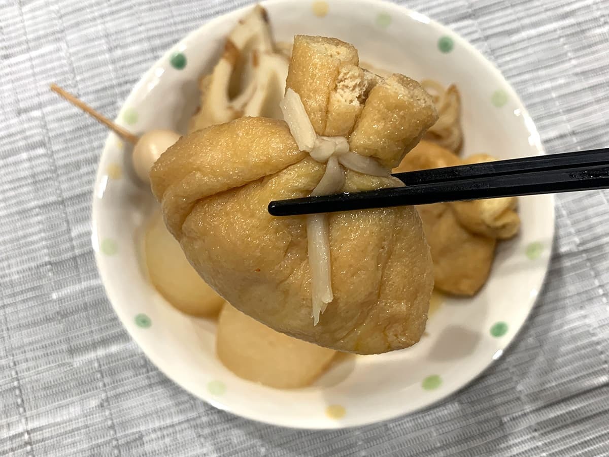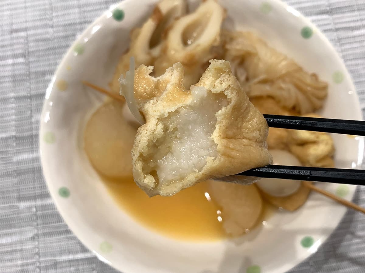 おでんにぴったりな「餅入りきんちゃく」を見つけましたので、今回具材として採用してみました!