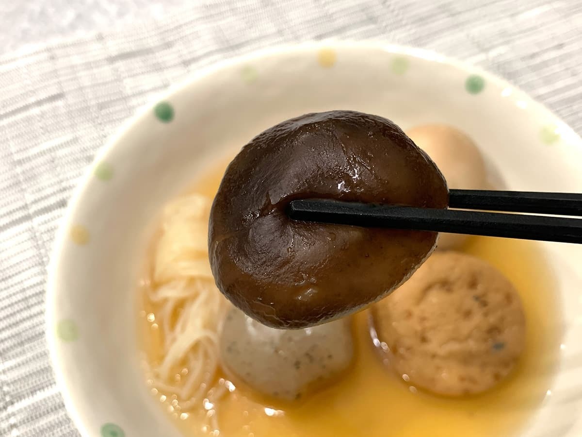 しいたけらしく柔らかいプリンとした食感!ダシをたっぷり吸っているので、噛むとダシの旨味が溢れ出てくるのはもちろん、しいたけの旨味も感じられて美味しいです♪