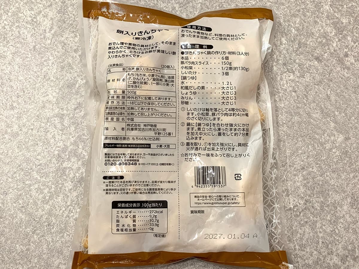内容量は500gで20個入り、価格は591円(税込)となっています。冷凍食品なので、他にも煮物やお鍋など好きなタイミングで活用できますよ♪