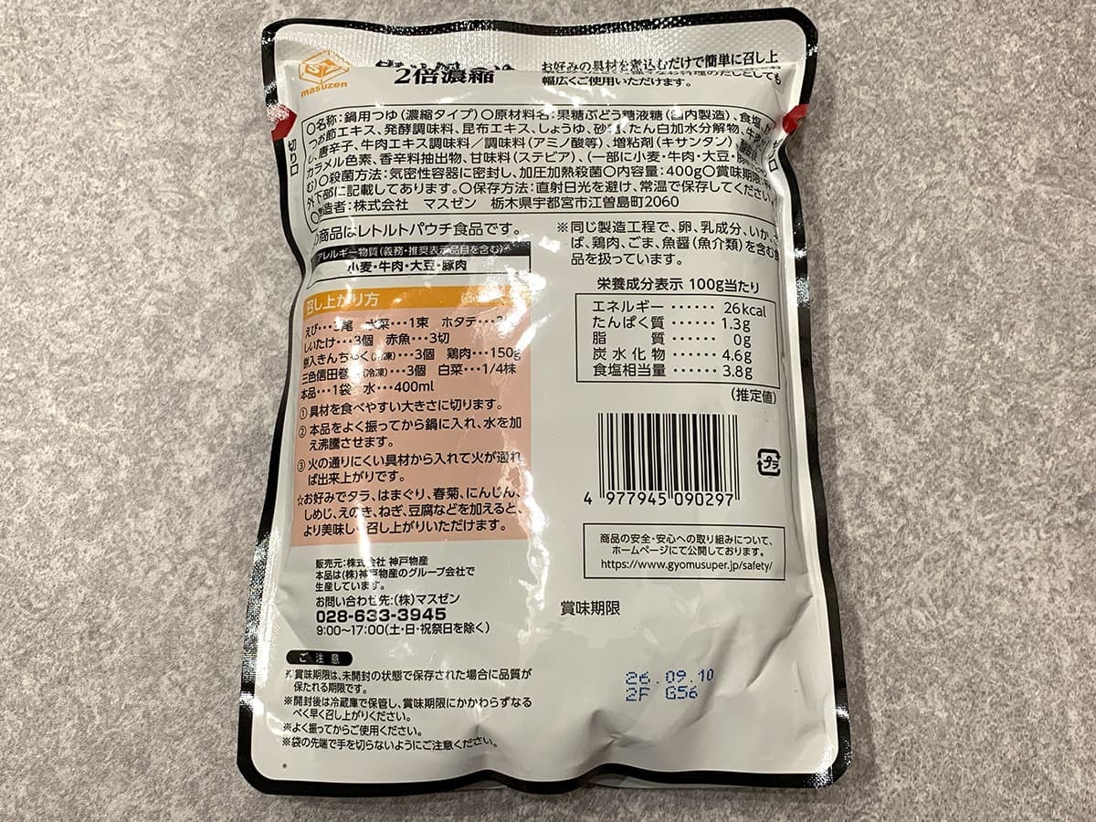 2倍濃縮タイプで内容量は400g。そして、価格は106円(税込)と驚異的な安さとなっています!