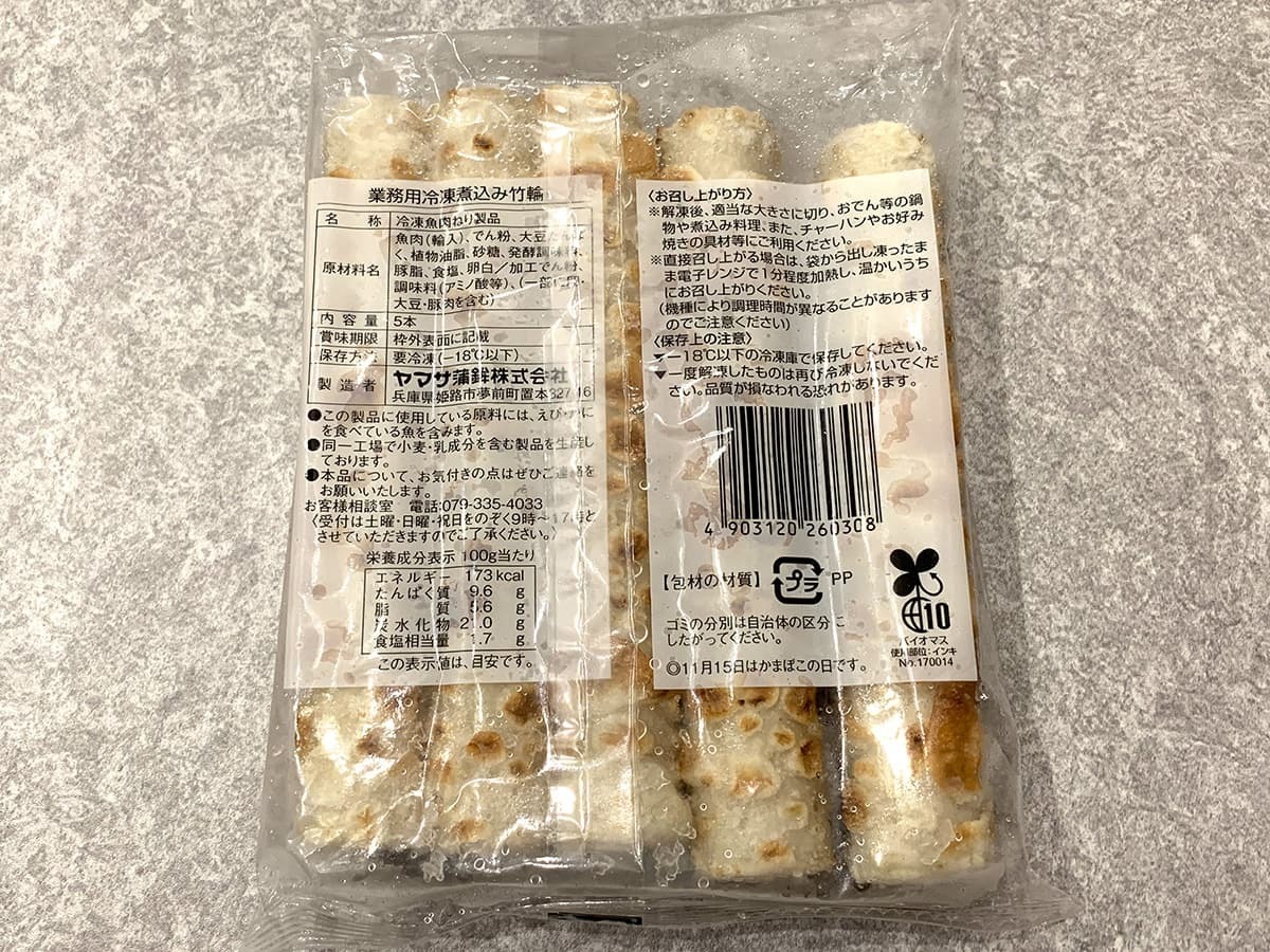 子供も大好きなちくわが冷凍状態で売られていましたので、今回購入してみました。内容量は5本で価格は203円(税込)と、お買い得さも目を引く一品です!