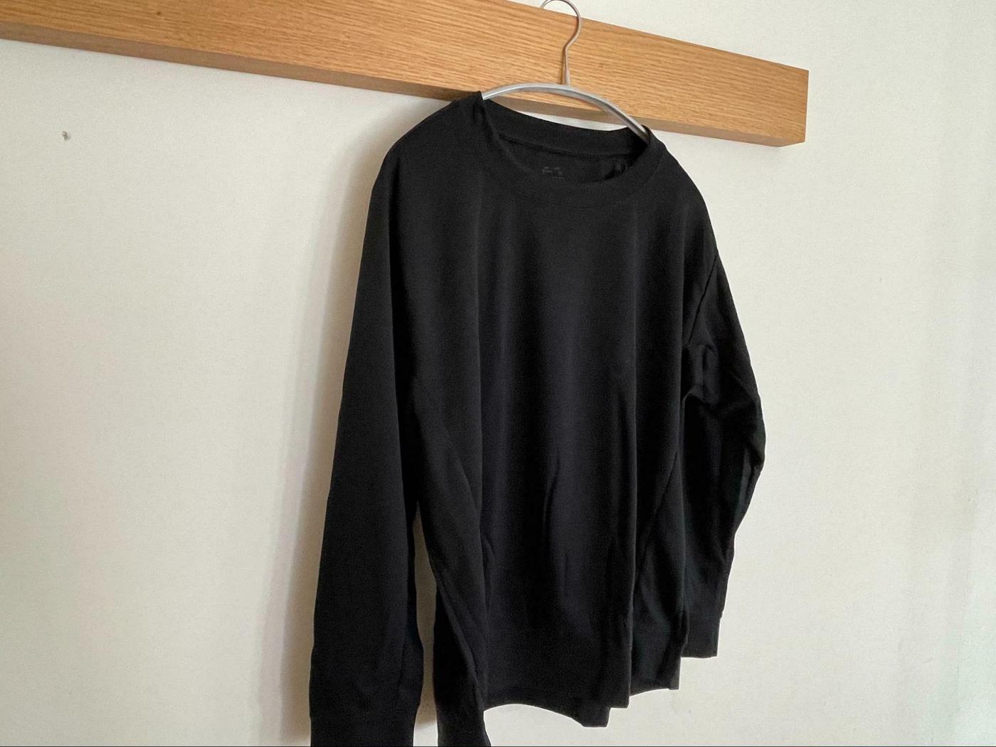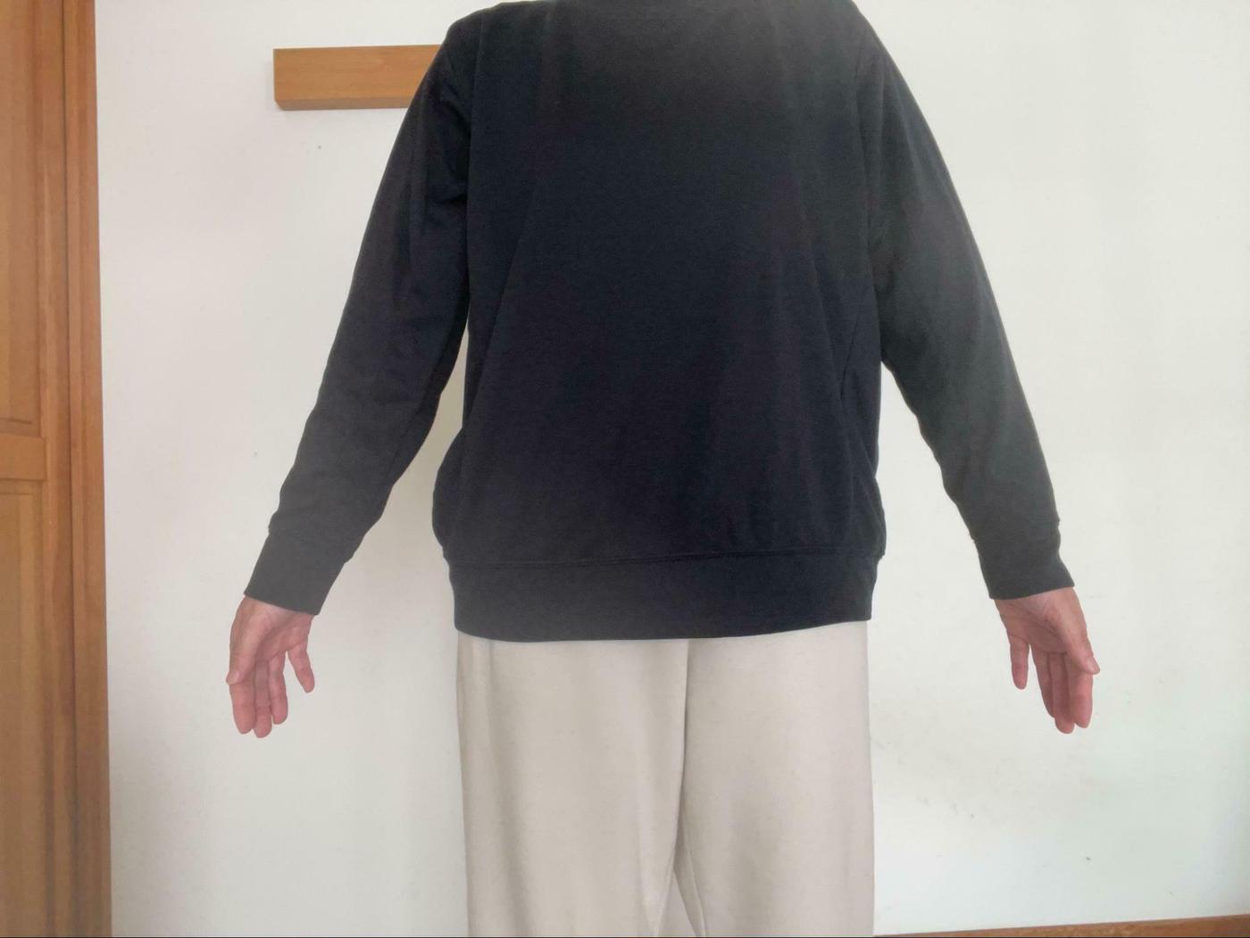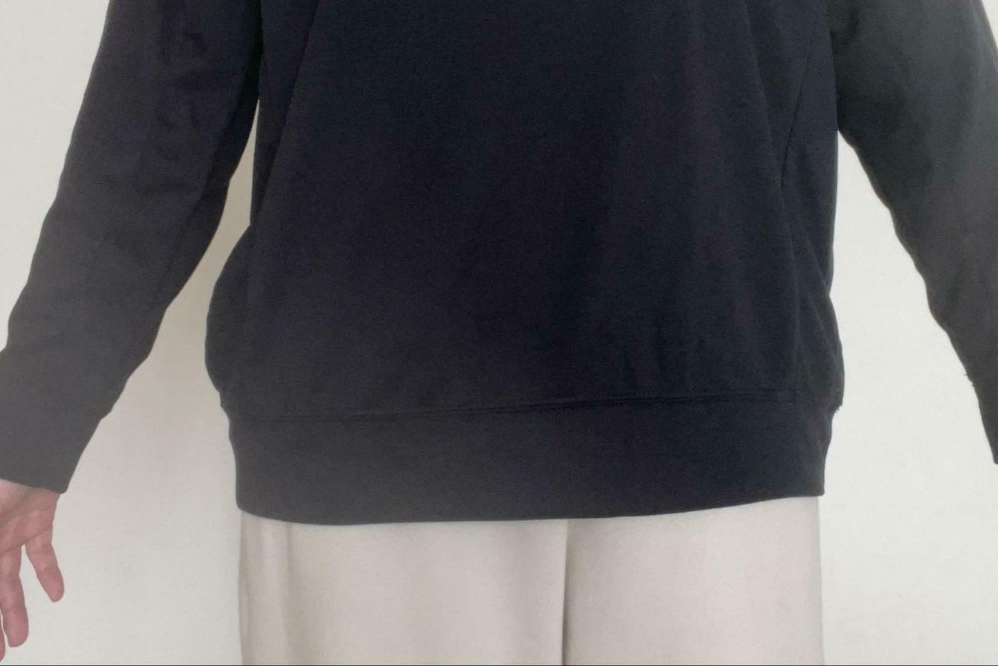 実際に着てみると、軽くて動きやすく、リラックス感たっぷり!身長153cmの筆者でも、袖も丈もほんの少しゆとりがあるちょうどいいサイズ感です。