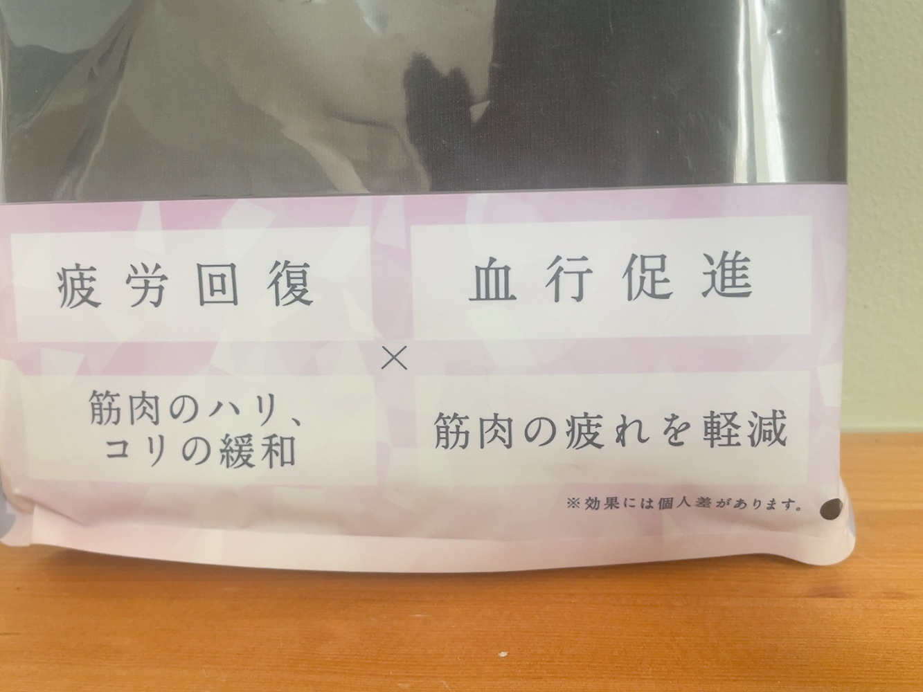 パッケージにも「疲労回復」や「血行促進」の文字が。冬の冷え対策にもぴったりで、まさに着る温活アイテムですね。