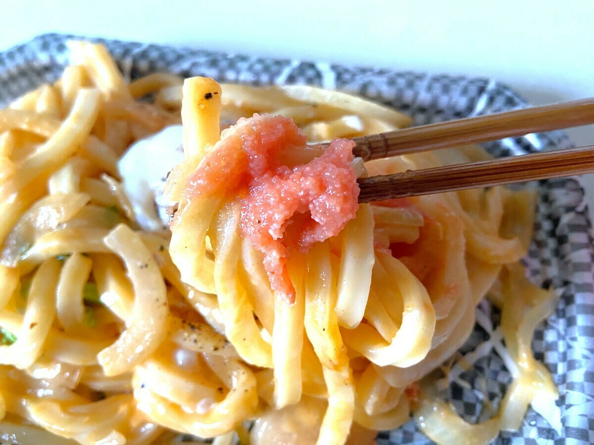 見た目も味も満点!ヤオコーの「明太クリームうどん」