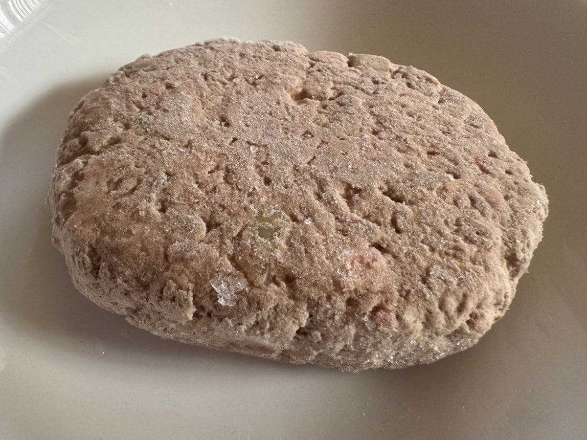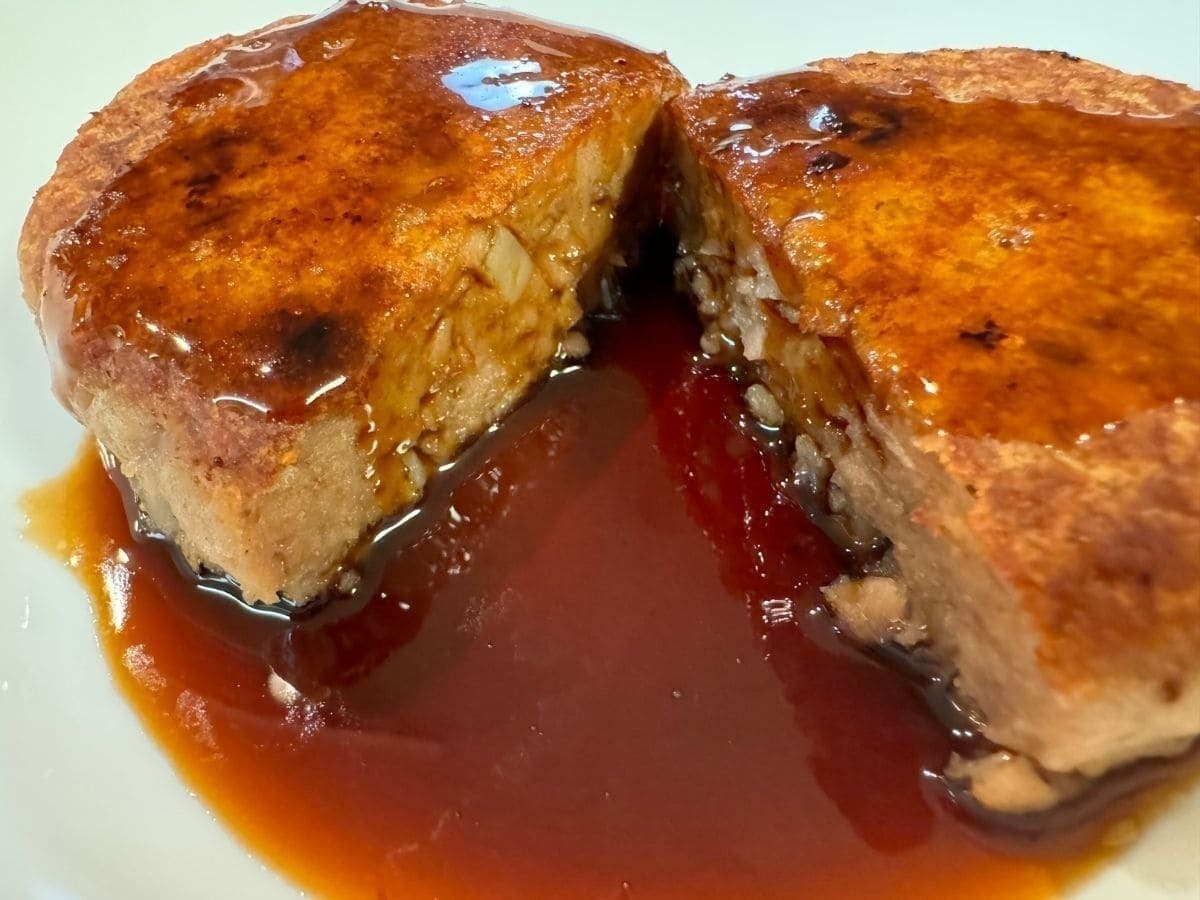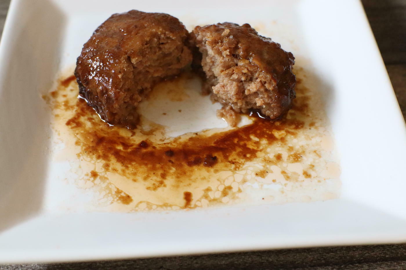 「あらびきハンバーグ」と同様に冷凍のまま焼くことができ、今回はオーソドックスに照り焼きソースでいただきました。