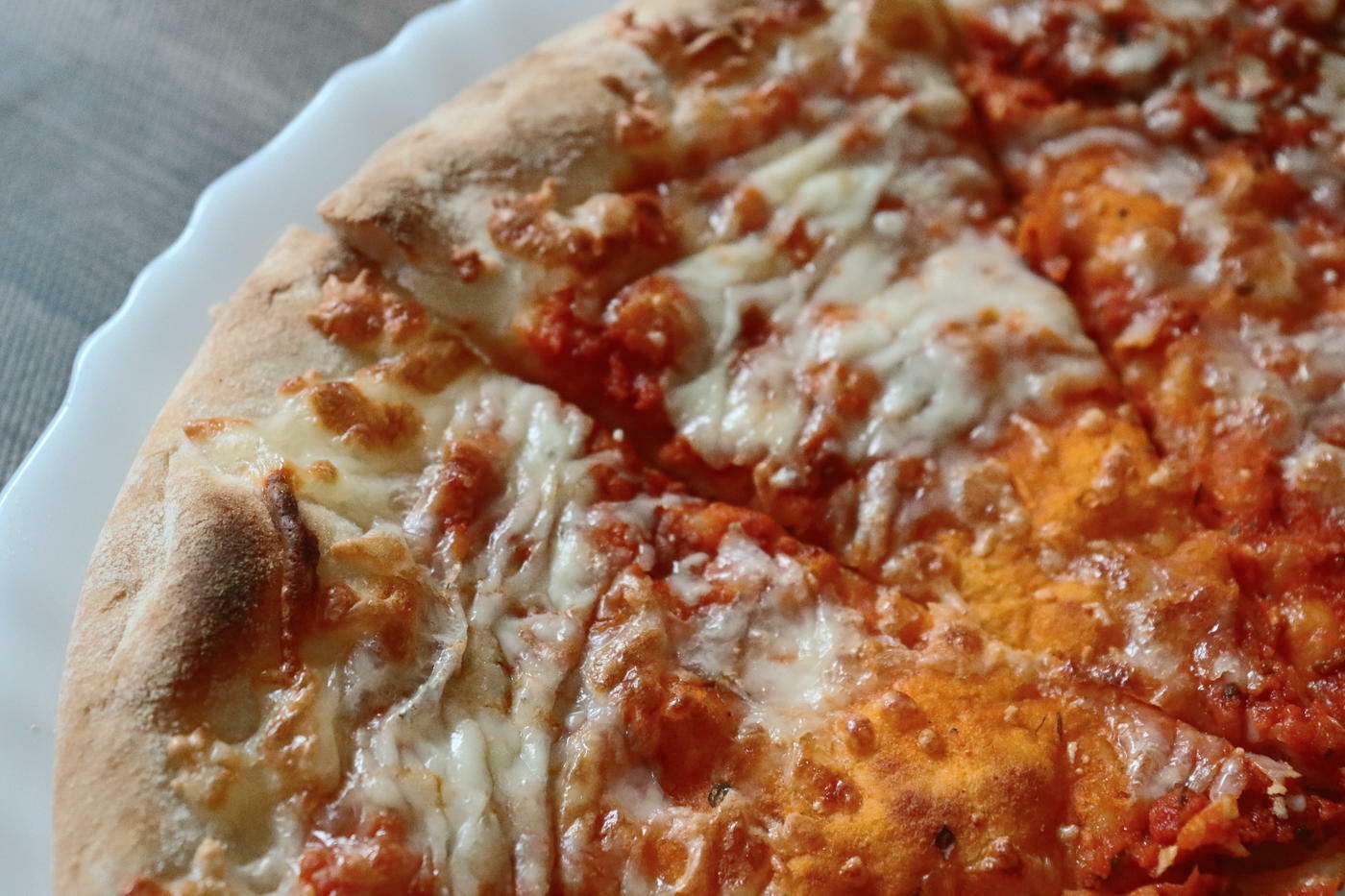 定番人気のマルゲリータピザ。具材はとってもシンプル。ピザソースの上に、モッツァレラチーズがたっぷりとのっています。