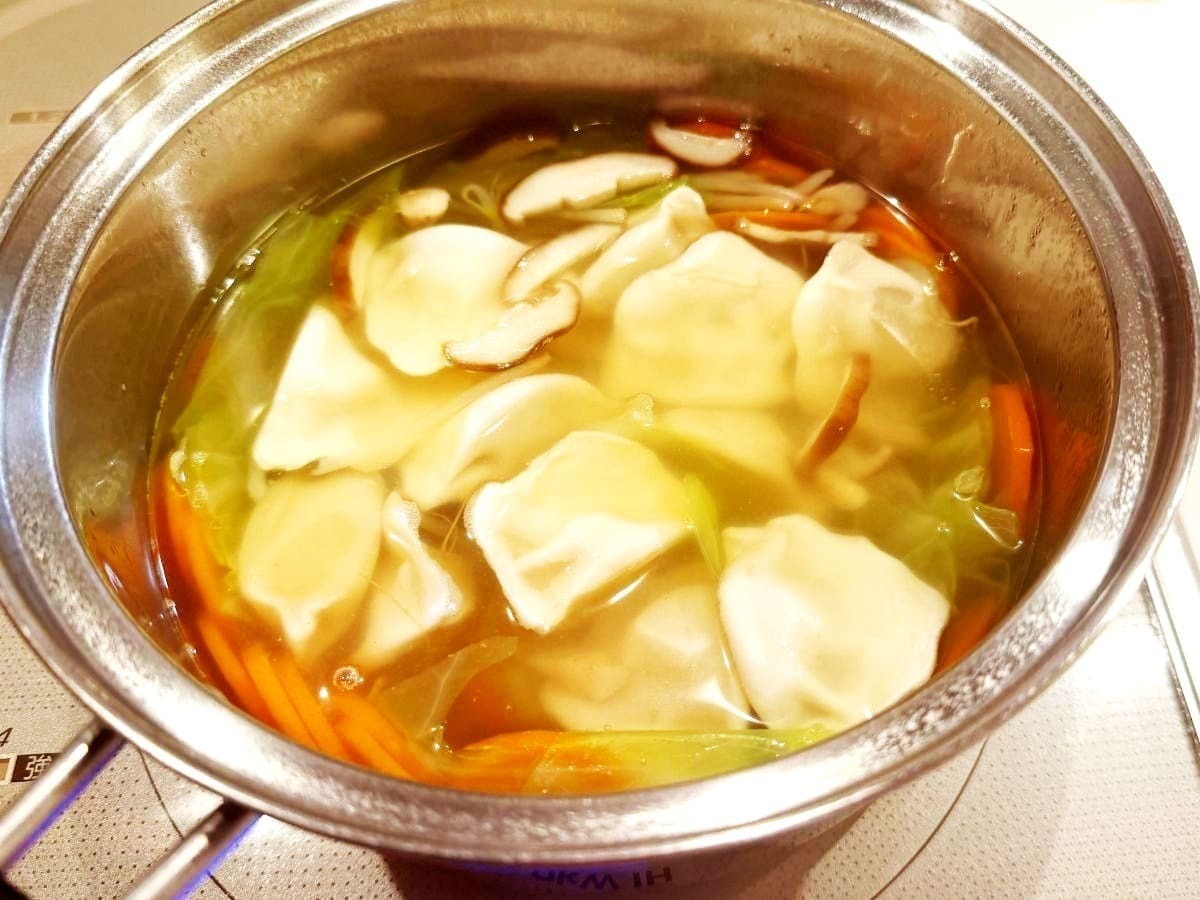 冷蔵庫にある野菜と鶏ガラスープを使って手軽に作れるスープ餃子は、野菜も摂取できて寒い季節にぴったりのメニューとなります。