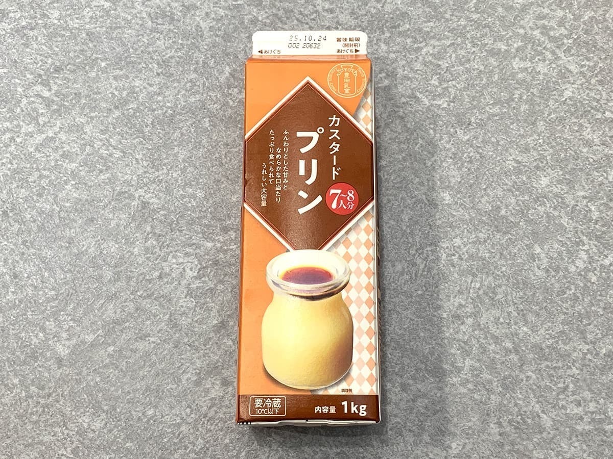 業務スーパーの人気シリーズである牛乳パックデザートから、1kg入りで約300円という圧倒的なコスパを誇る「カスタードプリン」です!