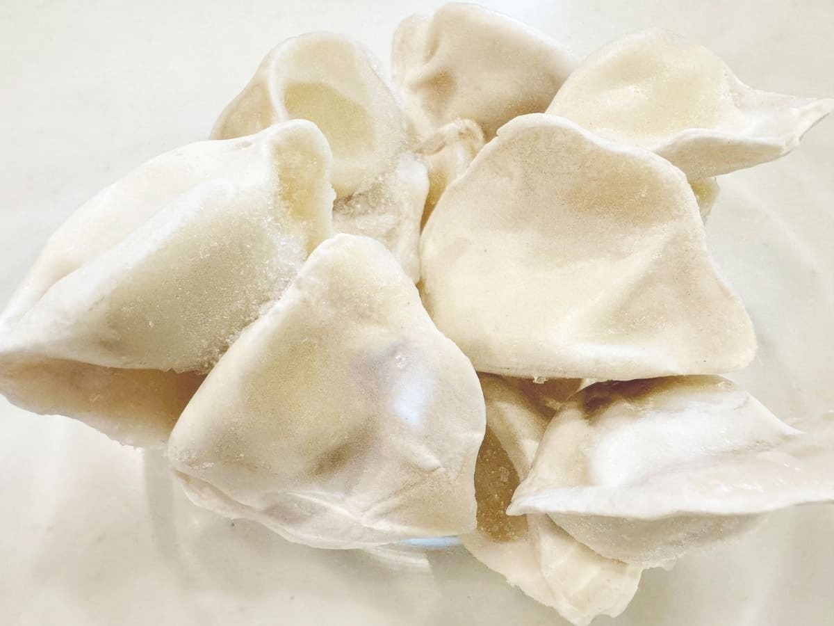 業務スーパーで見つけた『三鮮水餃子』は、豚肉・野菜・エビという3つの具材(三鮮)の旨味をもちもちの皮で包んだ商品です
