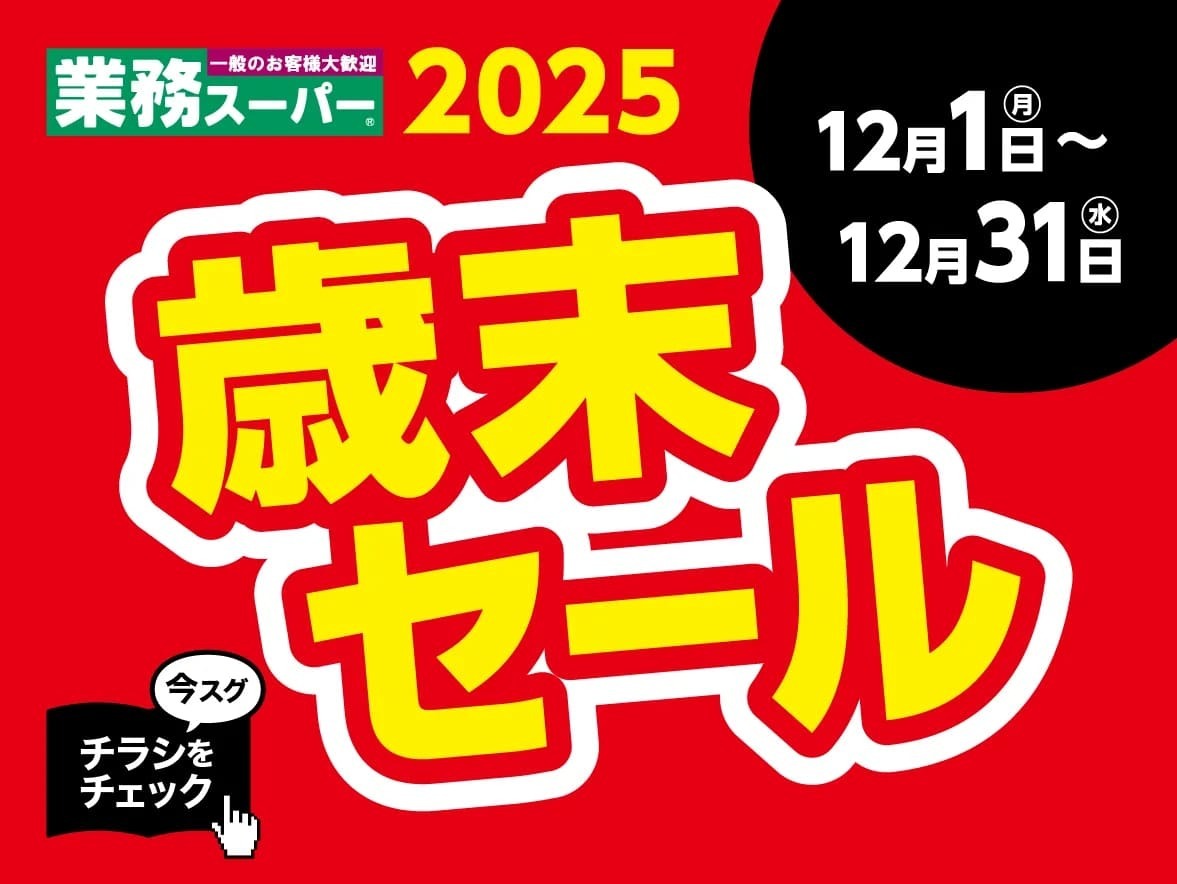 業務スーパーの歳末セールは、2025年12月1日(月)〜12月31日(水)まで開催されているようです!