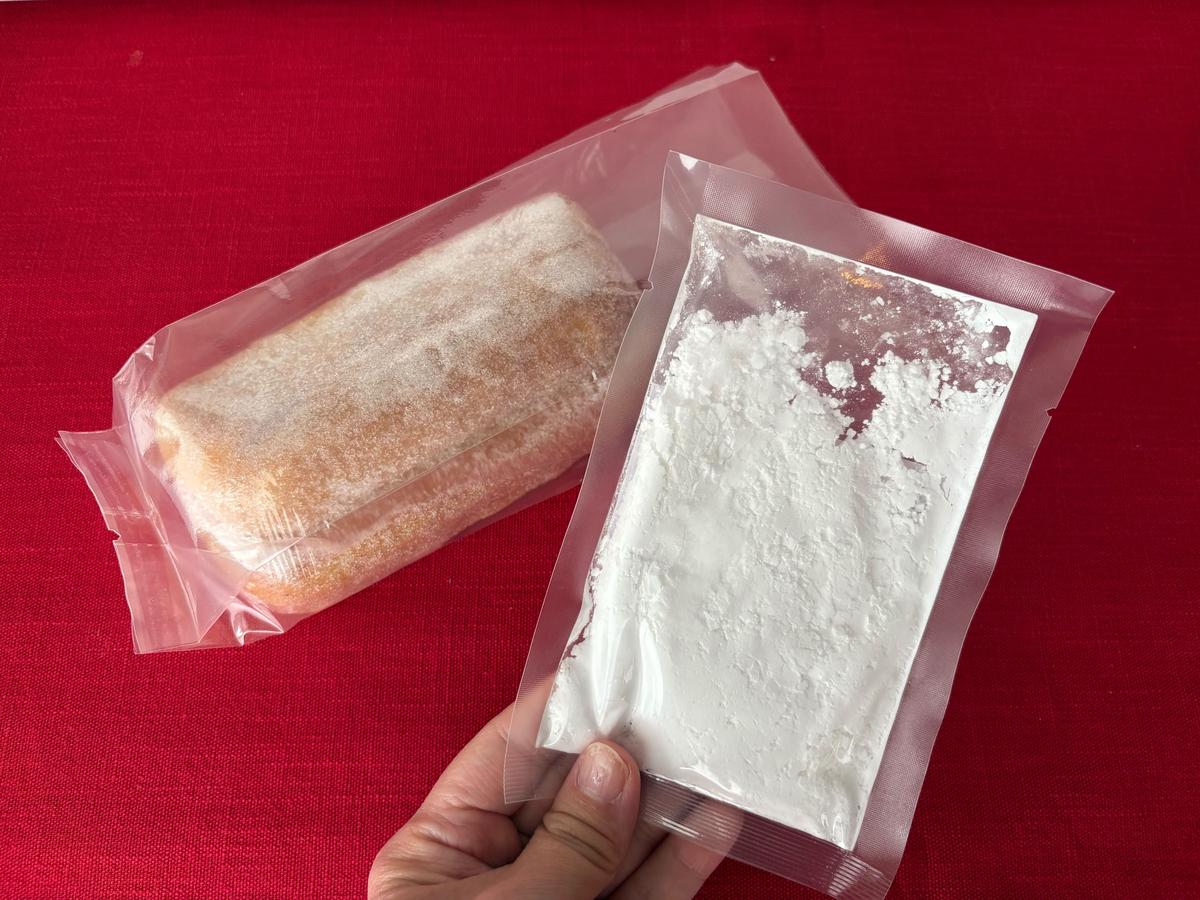 BOXを開けると、本体と粉砂糖が別々に入っています。