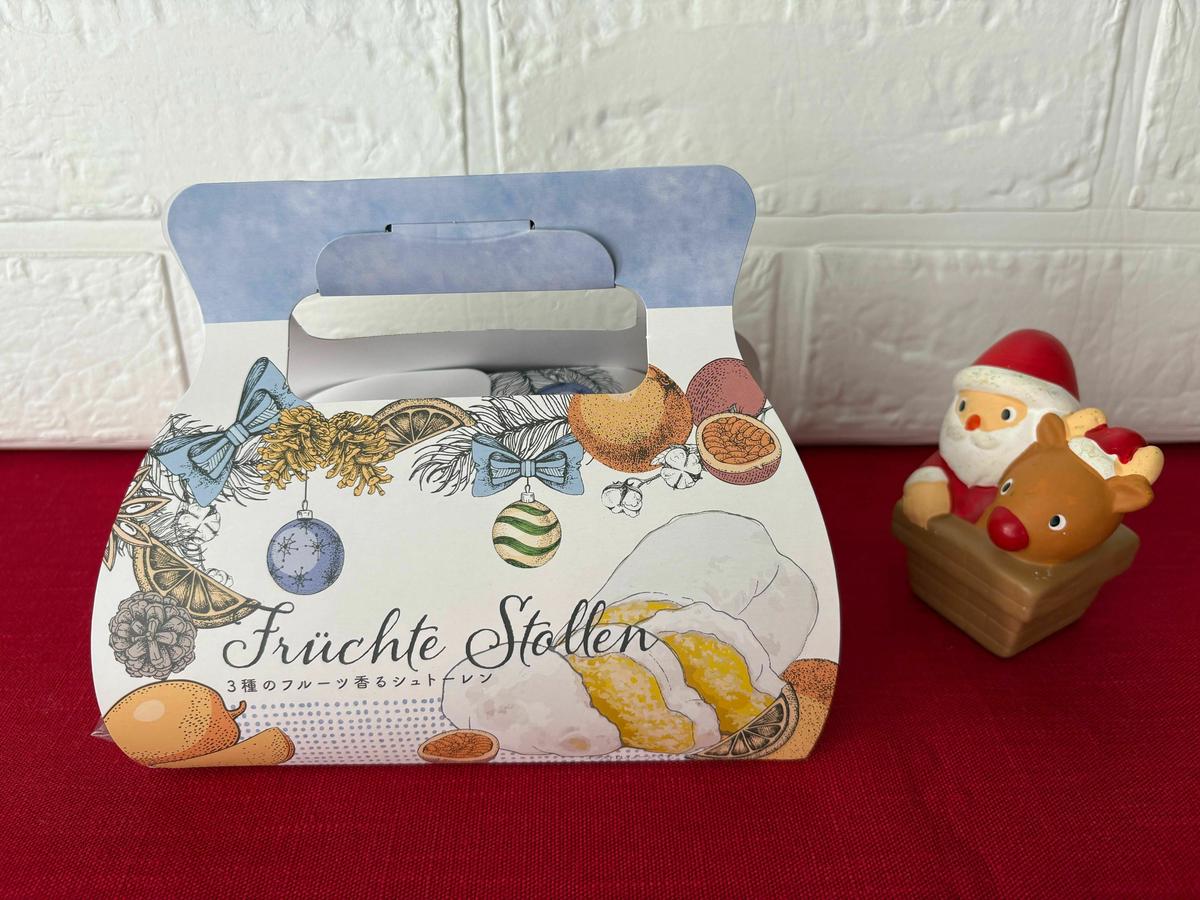 可愛くデザインされたBOXに入ったシュトーレン。 シュトーレンは、クリスマスを心待ちにしながら毎日少しずつスライスして食べるドイツの伝統菓子です。