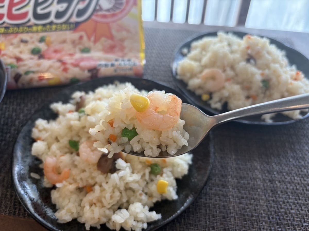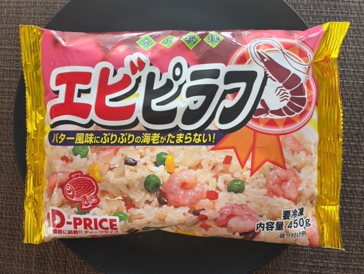 こちらもメーカー品と比べると圧倒的にリーズナブルなエビピラフ。