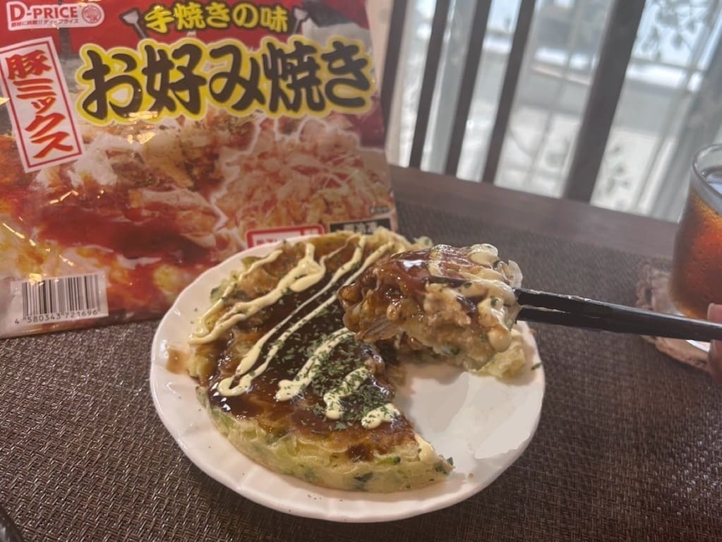 お好み焼きシリーズ、こちらはイカやタコが入った海鮮お好み焼きです。