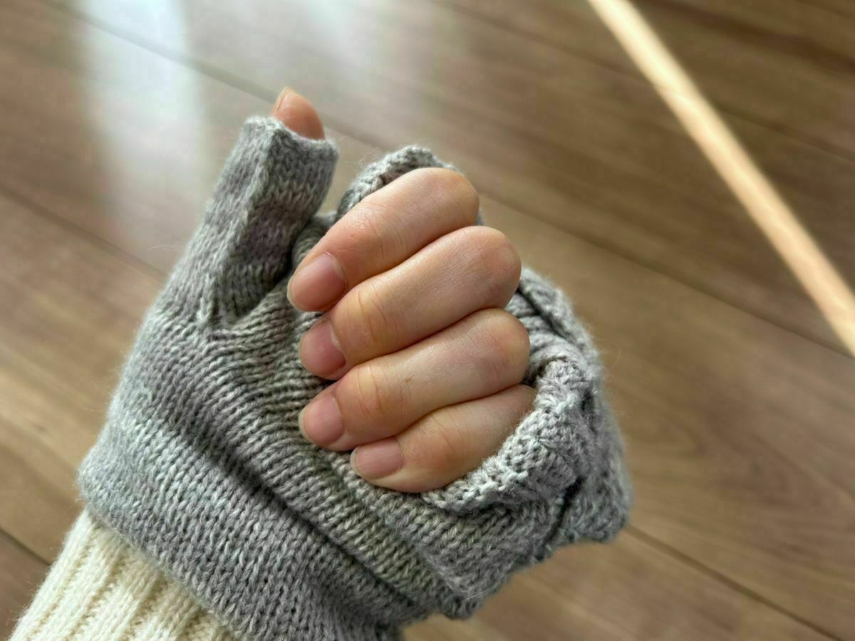 外側はニット、内側は毛足の長いボアという二重構造になっており、指先を出せる状態と、カバーを被せたミトン状態を使い分けられる2way仕様となっています。