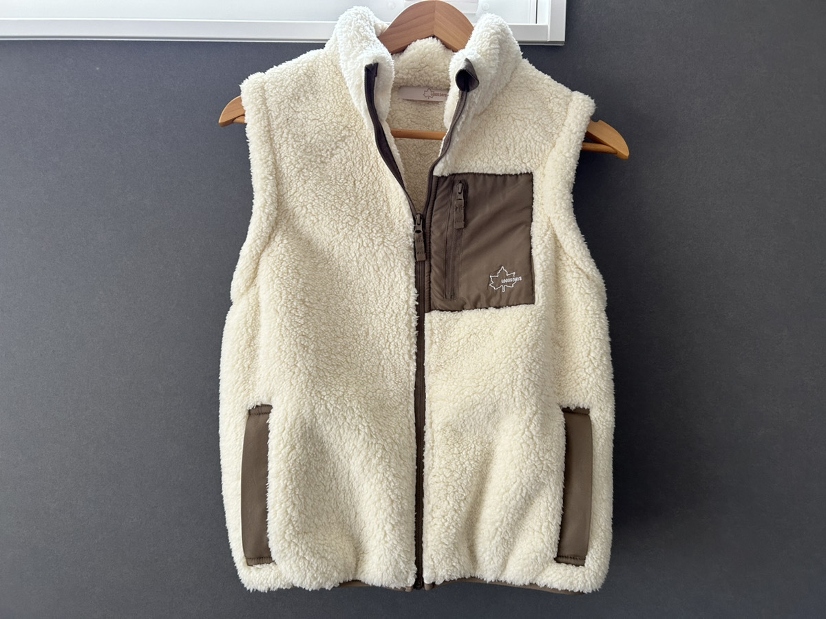 「LOGOS DAYS 防風ボアベスト」は、アウトドアブランド「LOGOS」としまむらのコラボレーションによるブランド「LOGOS DAYS」の商品で、羊のような見た目のかわいいボア素材を使用しています。