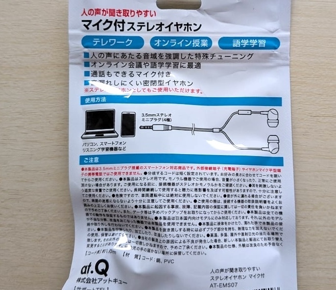 筆者が今まで使ったことがあるイヤホンは、飛行機内で配られるようなシンプルなタイプと、数千円ほどのマイク付きイヤホンで、セリアのイヤホンは初めての体験でした。