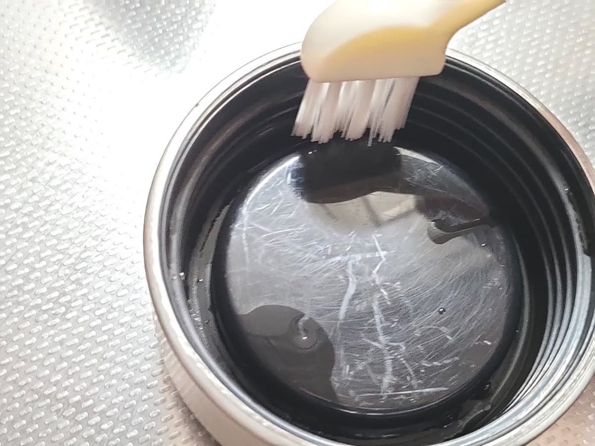 その他、水筒の蓋にある細かい溝にもしっかりフィットしました!シンプルな掃除用品ながら、さまざまなアイテムに活用できるのも評価ポイントです♪