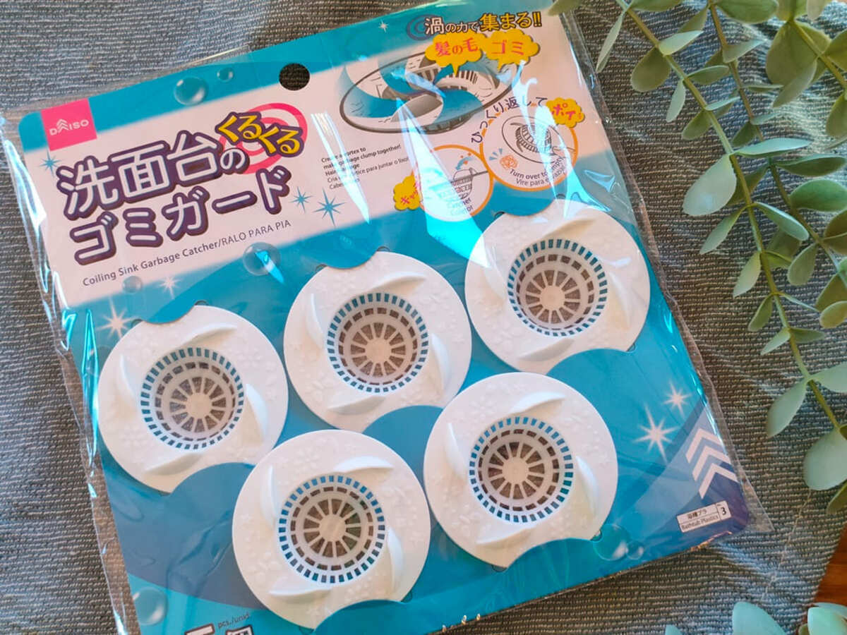 洗面台のゴミを放置して水の流れが悪くなったり、掃除が面倒になったりする悩みを解決してくるのが、ダイソーの「洗面台のくるくるゴミガード」。
