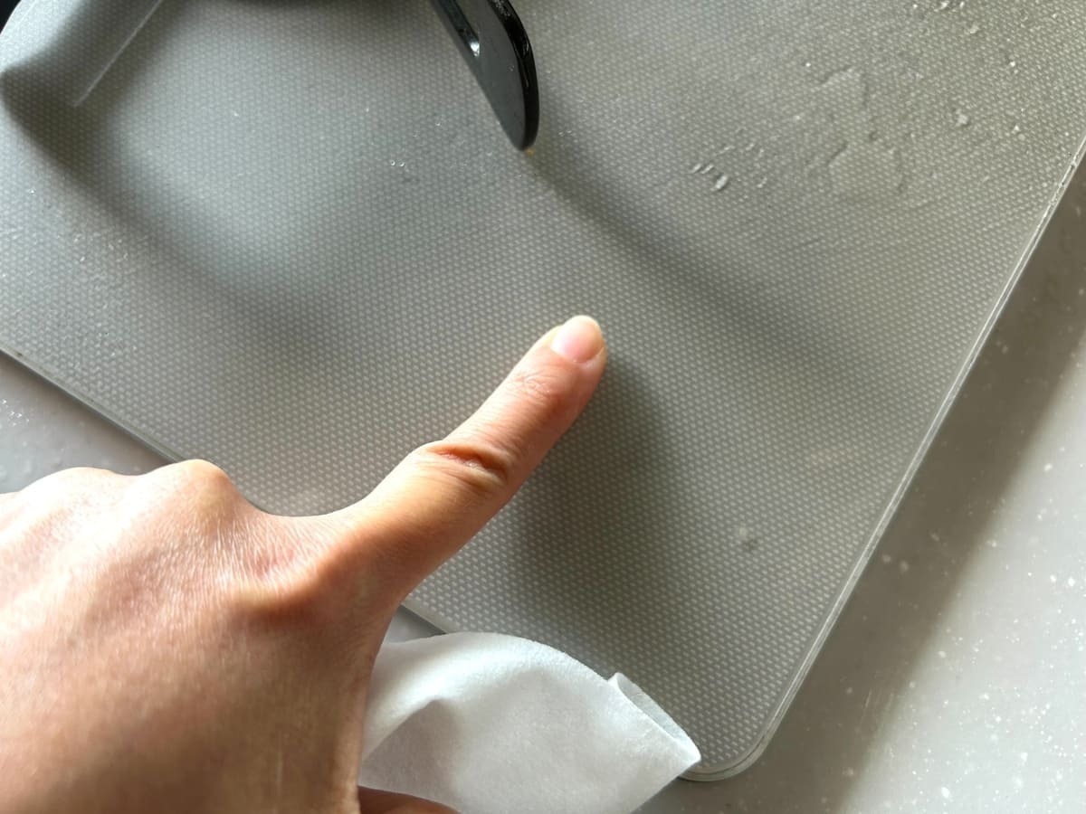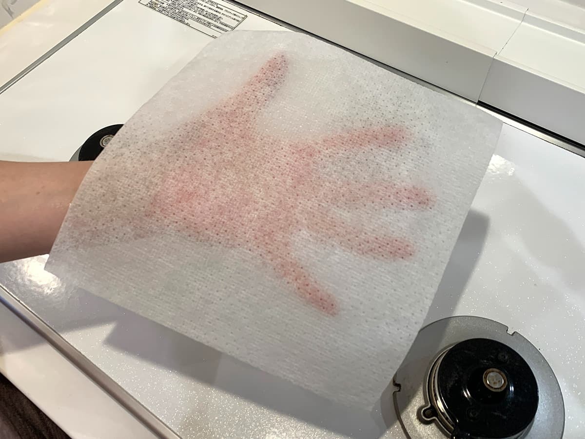 前日の油はねでヌルヌルした箇所もサッとひと拭きするだけで綺麗になり、拭いた部分とそうでない部分の境目がくっきり分かるほどです。