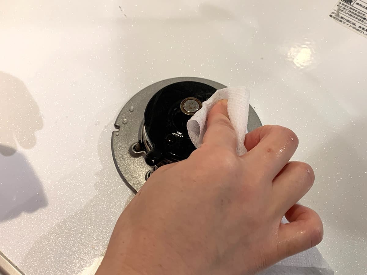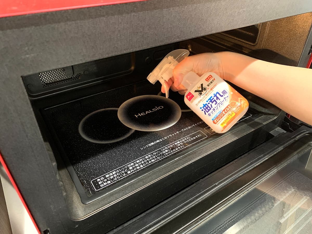 スプレーの噴射後は布巾やキッチンペーパーで拭き取っていきます