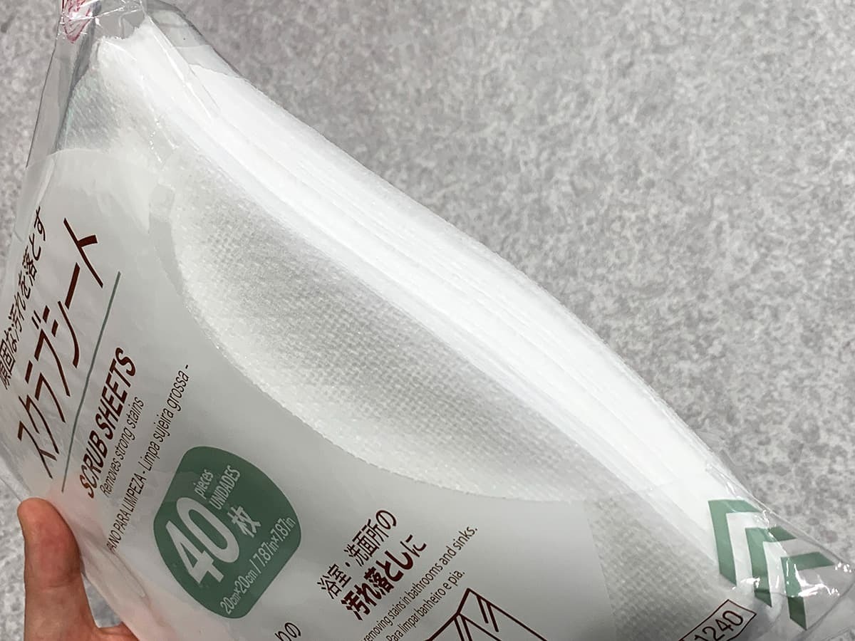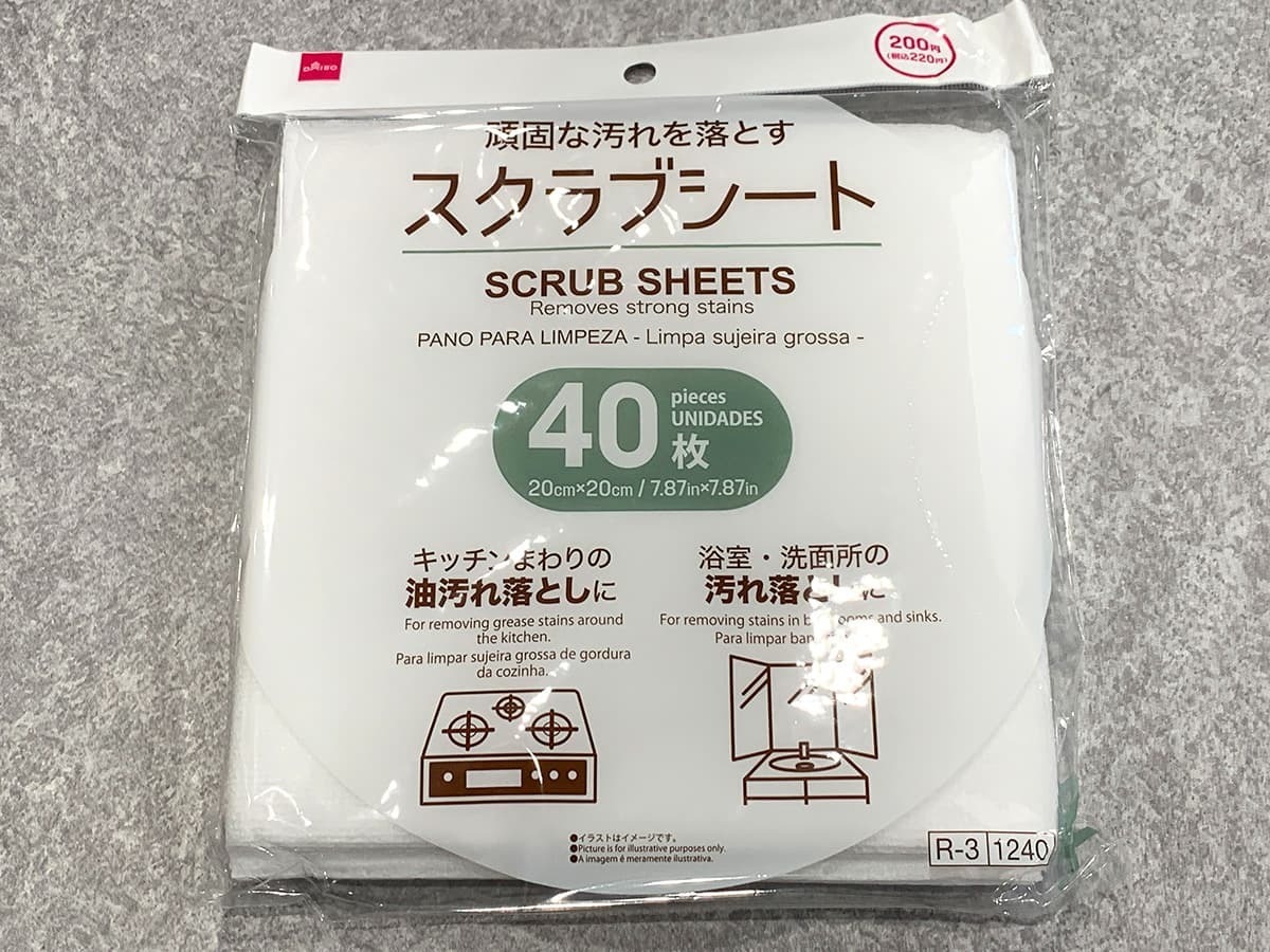 デコボコしたスクラブ加工が施されており、こびりついた汚れをしっかり削り取れるのが特徴的。40枚入りの内容量で、価格は220円(税込)となっています。