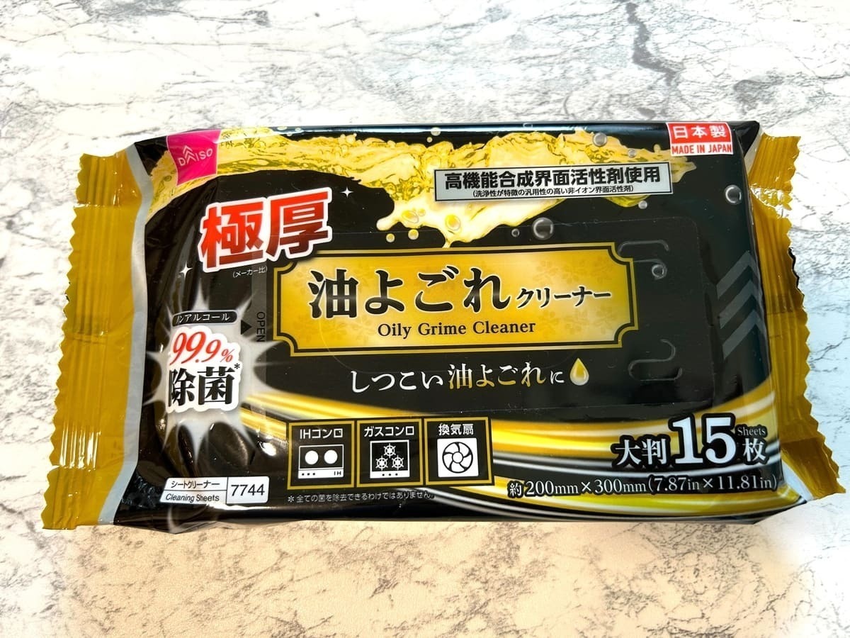 「極厚 油よごれクリーナー」は、洗剤などを使わずにこれ1枚でコンロをサッと綺麗にできる優れもの。