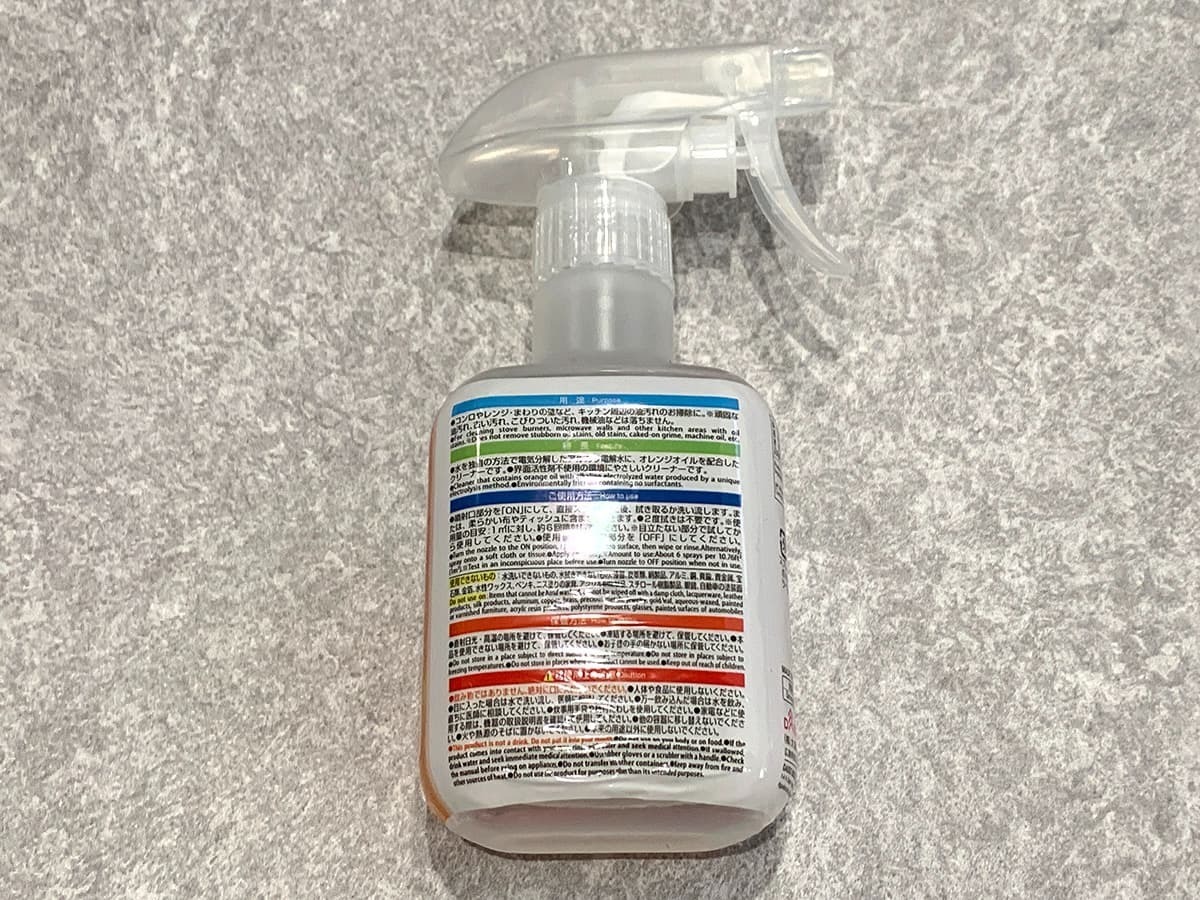 油汚れに特化したスプレータイプのキッチンクリーナー。オレンジオイル配合で強い薬品臭がなく、掃除中も不快感が出にくいのが嬉しいポイントです♪
