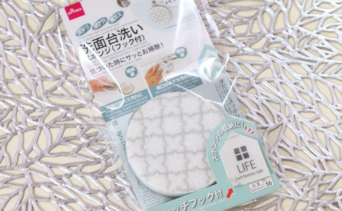 こちらはスポンジとそれを引っ掛けるフックがセットになって110円(税込)という高コスパ商品で、実際に使ってみると非常に使いやすく、筆者は家の残り2つの洗面台にも設置しようと決めたほどです。