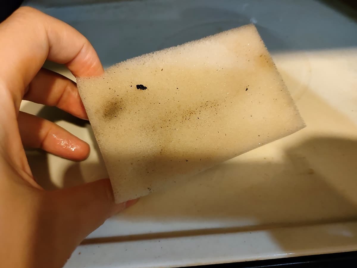 実際にスポンジで拭いてみると、汚れを綺麗に落とすことができました♪力強くゴシゴシする必要はなく、軽い力で汚れが取れていくのも魅力的!