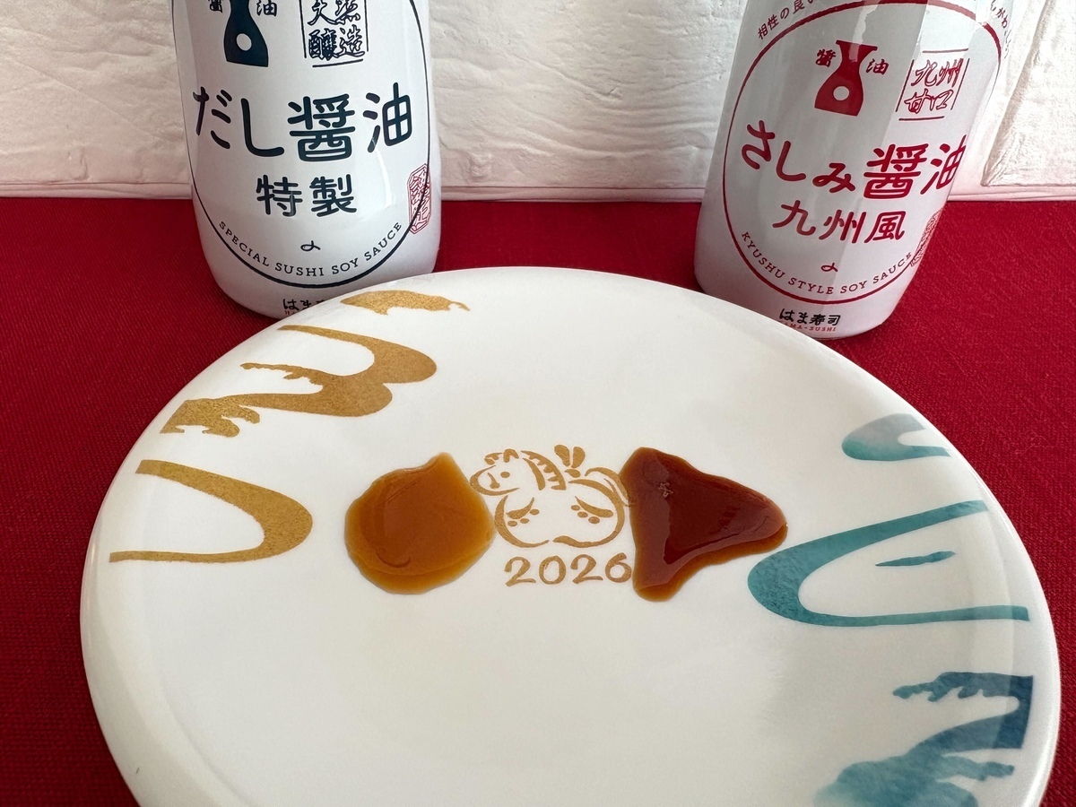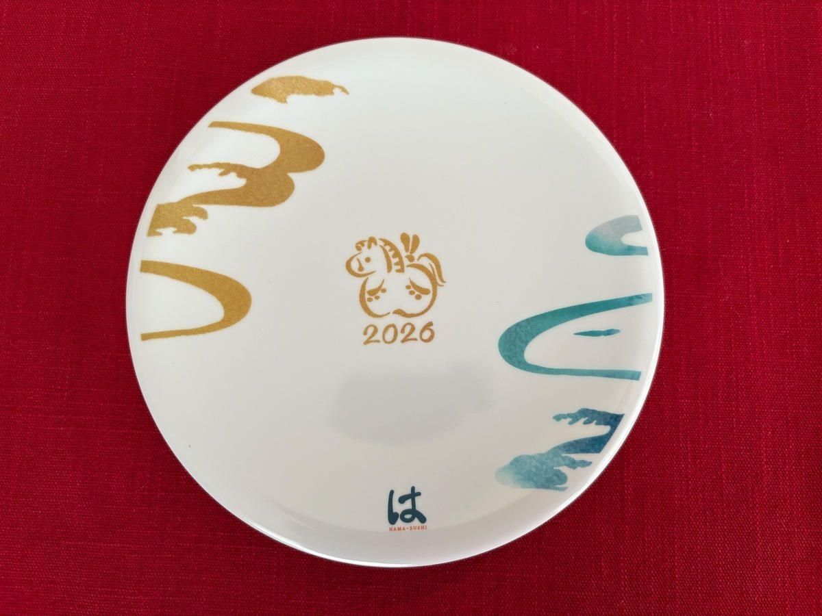 こちらが先ほど、醤油の画像で登場しましたが、2026年の干支「午」が描かれた寿司皿です。