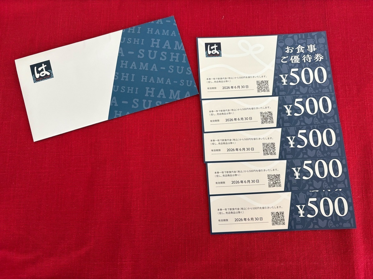 はま寿司「お食事ご優待券」は2,500円分