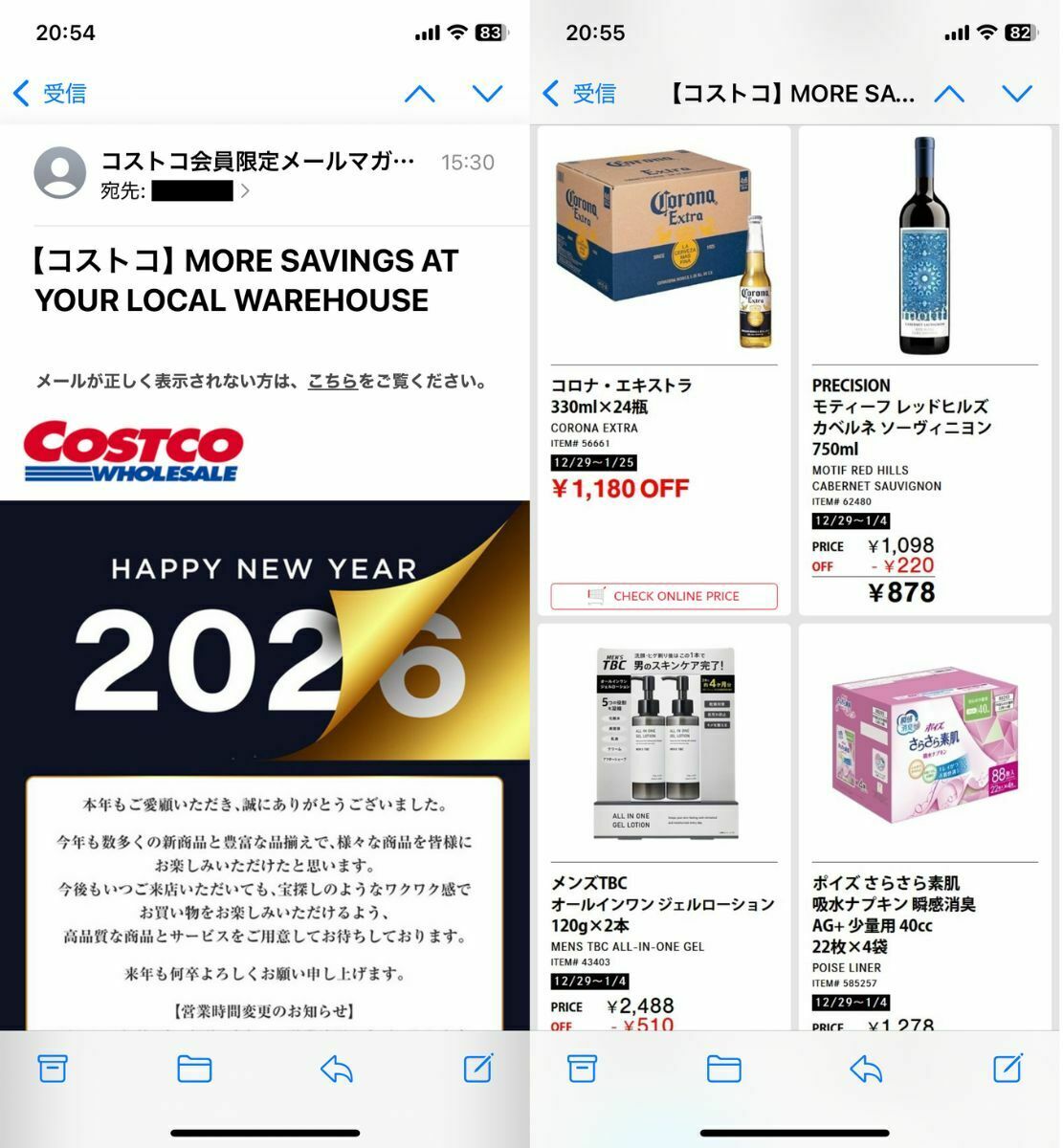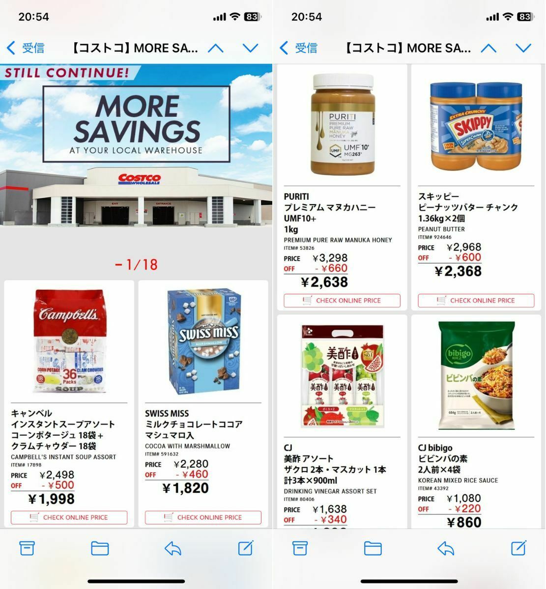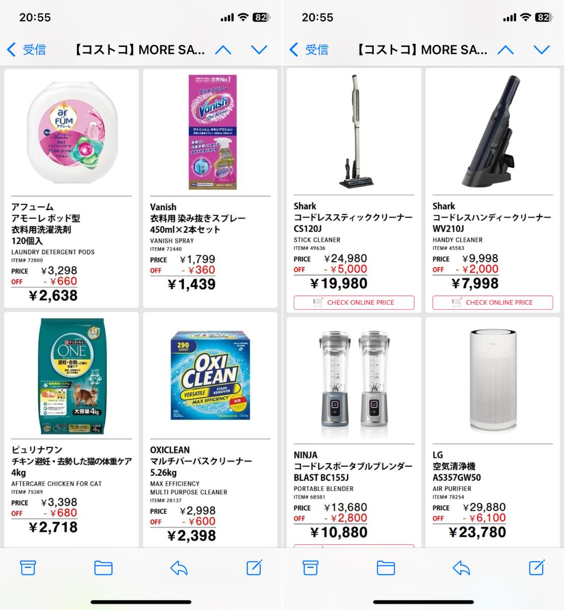 コストコのメルマガでは割引情報が配信されていますが、意外にも商品量は多くお得な情報が満載です!