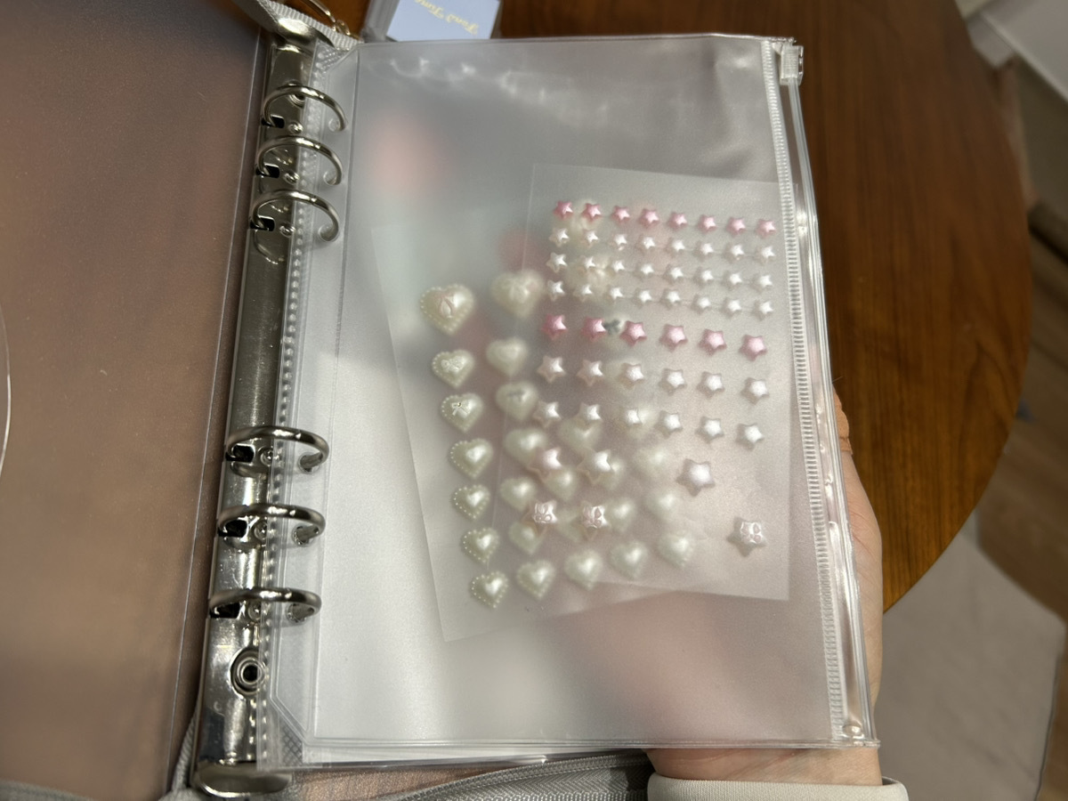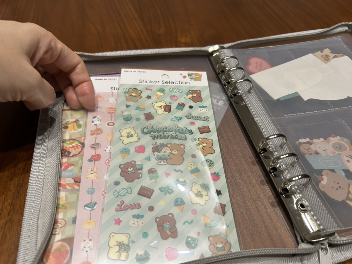ジッパー付きのファイルなので、シールが落ちる心配もなく持ち歩きにとっても便利。
