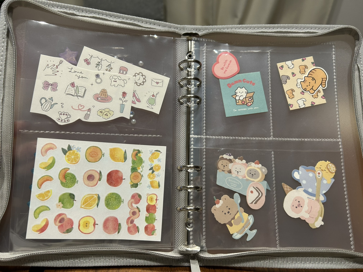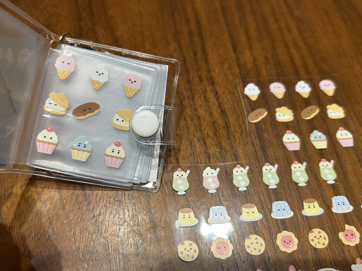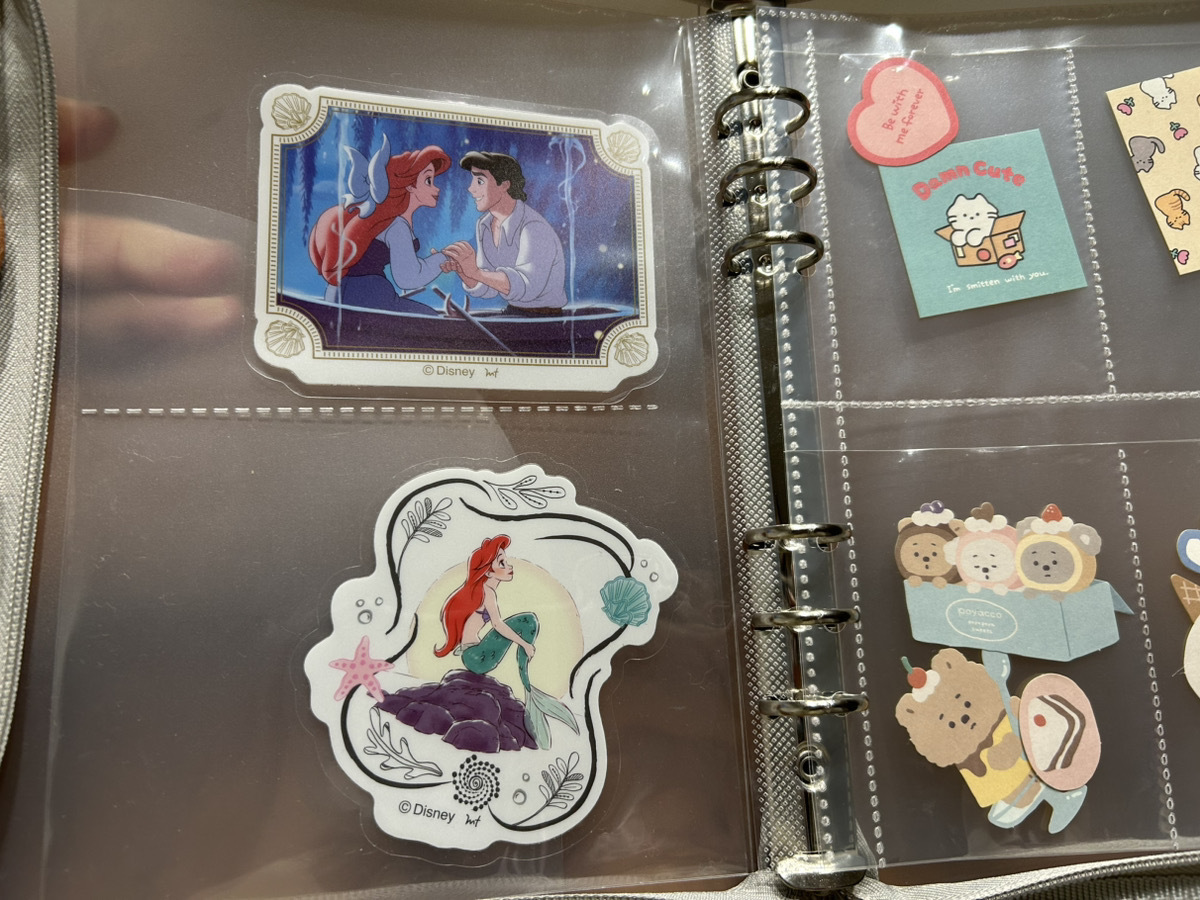 本来は写真を入れておくものですが、ポケットにシールを収納したり貼ったりして、シール帳として使っているのを見て「なるほど!」と感心しました。