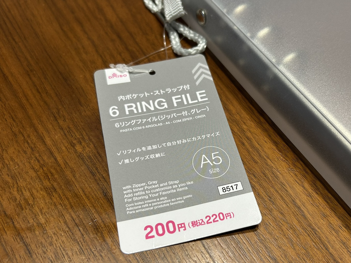 ダイソーで作るシール帳①A5サイズで本格派!「6リングファイルジッパー付き」