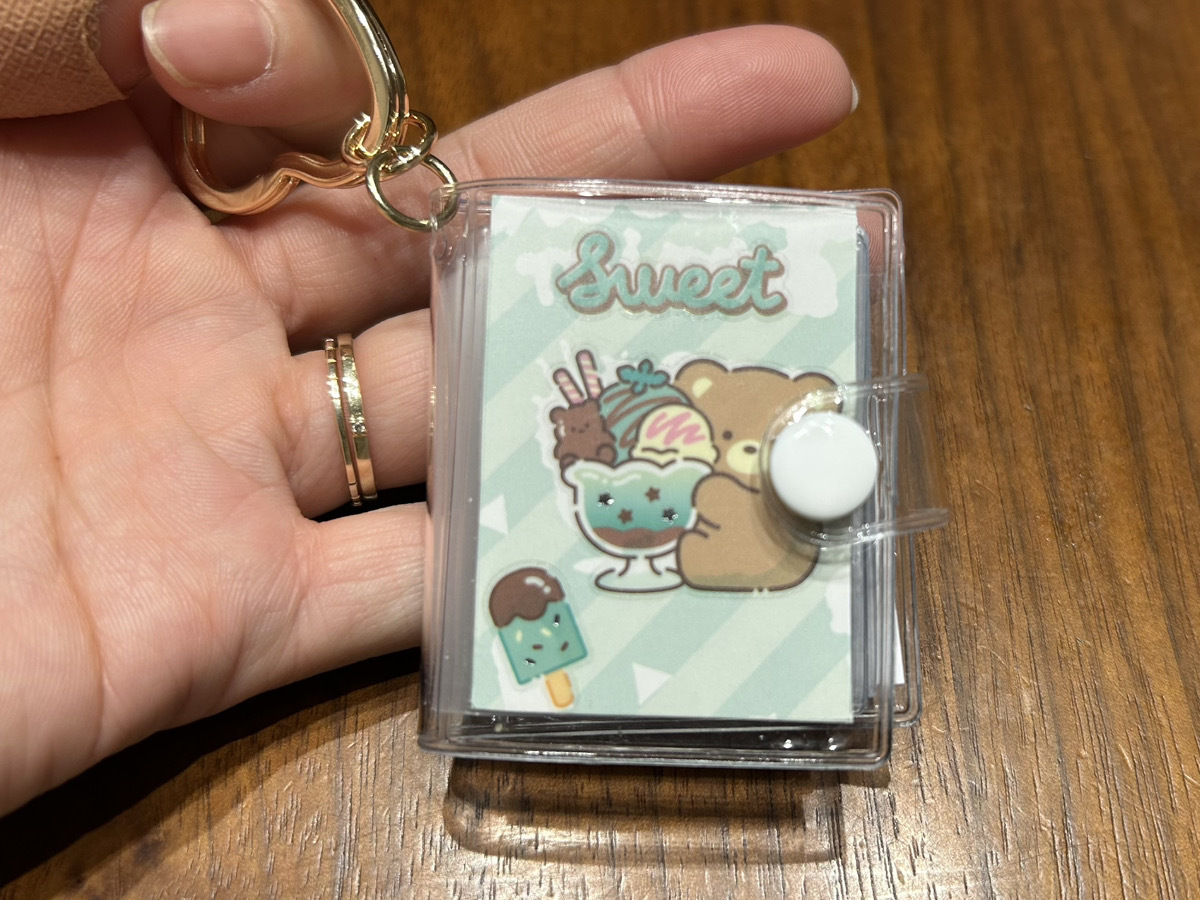 2つ目は「アルバムキーホルダー くま」110円(税込)を使ったシール帳。