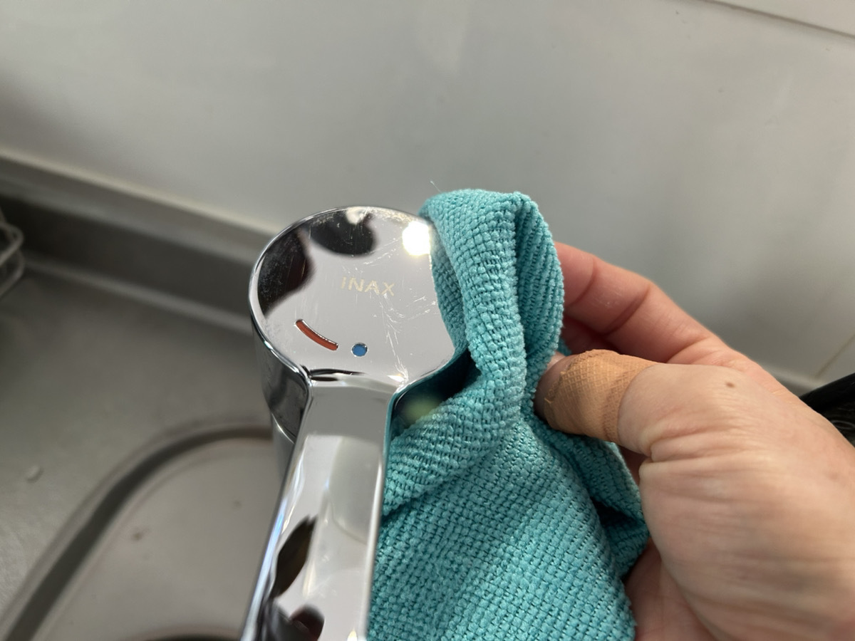 水拭きも乾拭きもできるということで、蛇口周りも試してみました。