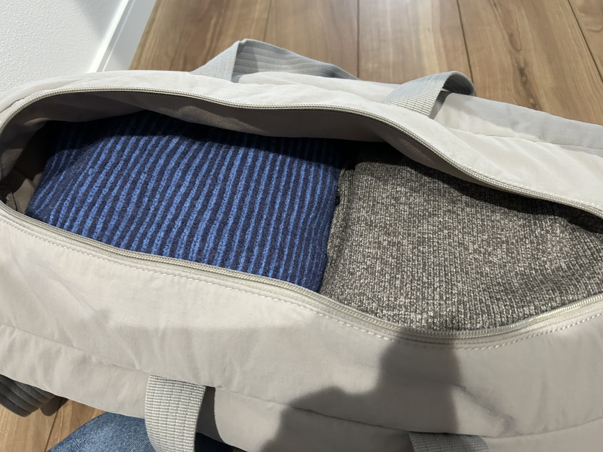 まずはボストンバッグの状態で、どれくらい入るか試してみました。