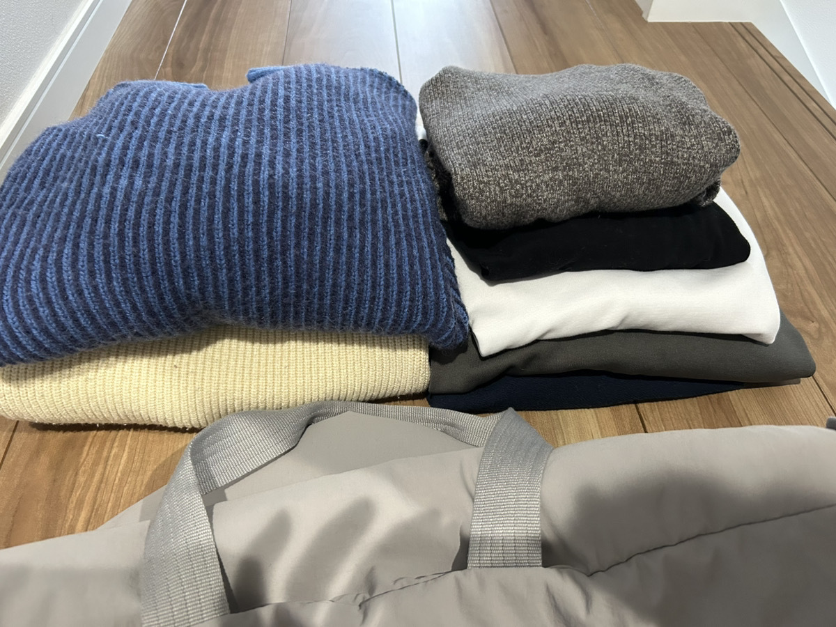 厚手のニット2着、ロンTや薄手のトレーナーなど長袖トップスが5着と、かなり大量に入ります。