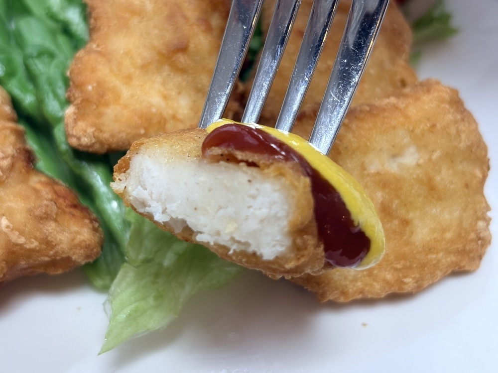 もちろん、ナゲットの定番であるケチャップやマスタードをつければ味変になり、ぱくぱくと食べられますよ♪