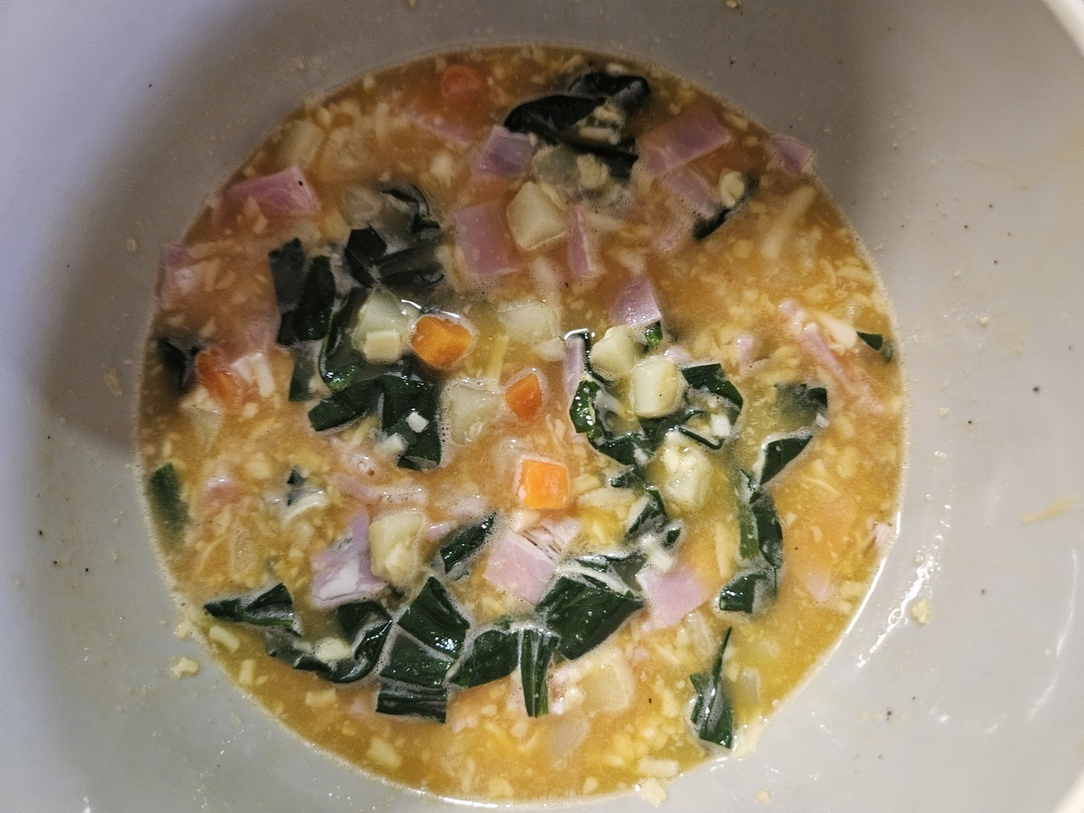 『ポテトミックス』はダイス状のまま使いましたが、多めにチンすれば具材はかなり柔らかくなるので滑らかな口当たりが好みの方は少し潰して作るのがよいかもしれません!