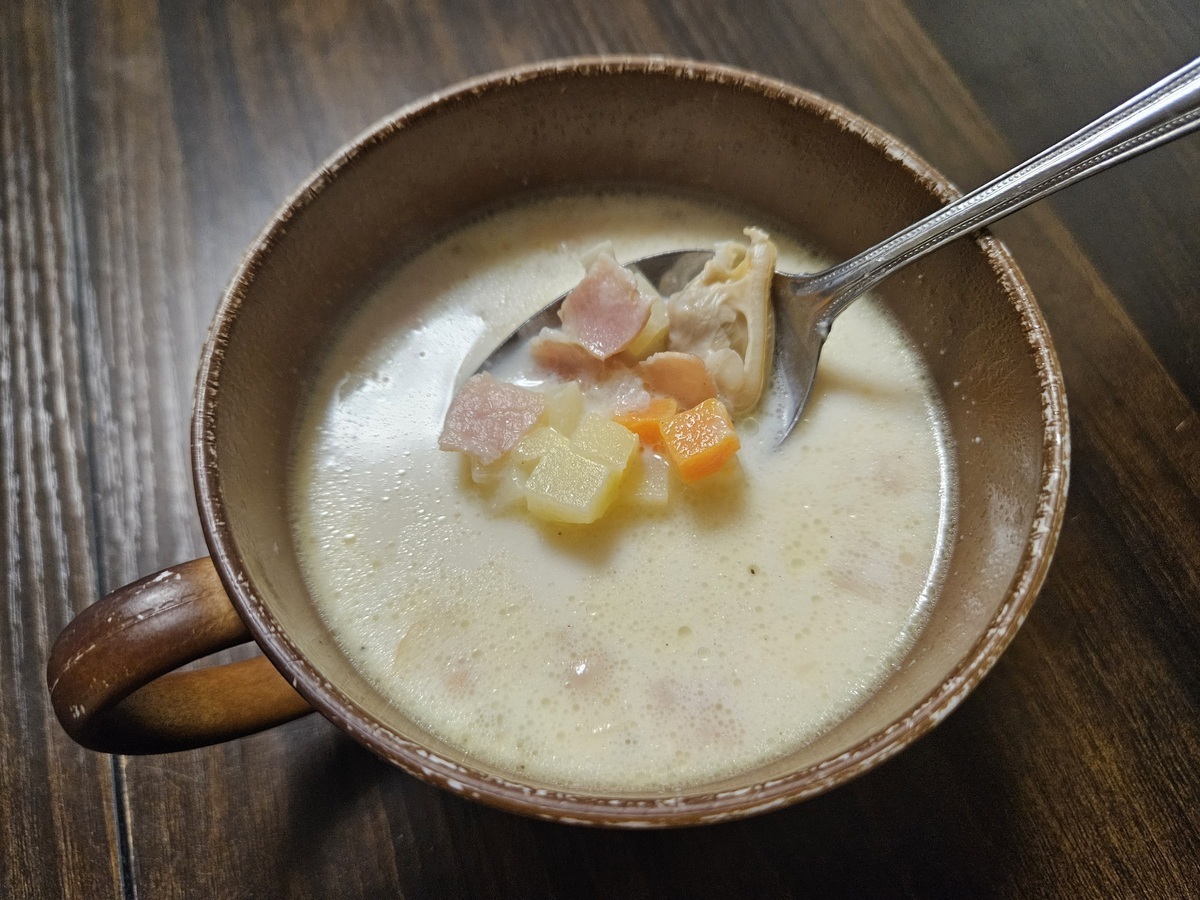 トマトやコンソメベースにも合いますが、今回は牛乳を使ってクラムチャウダーにします♪