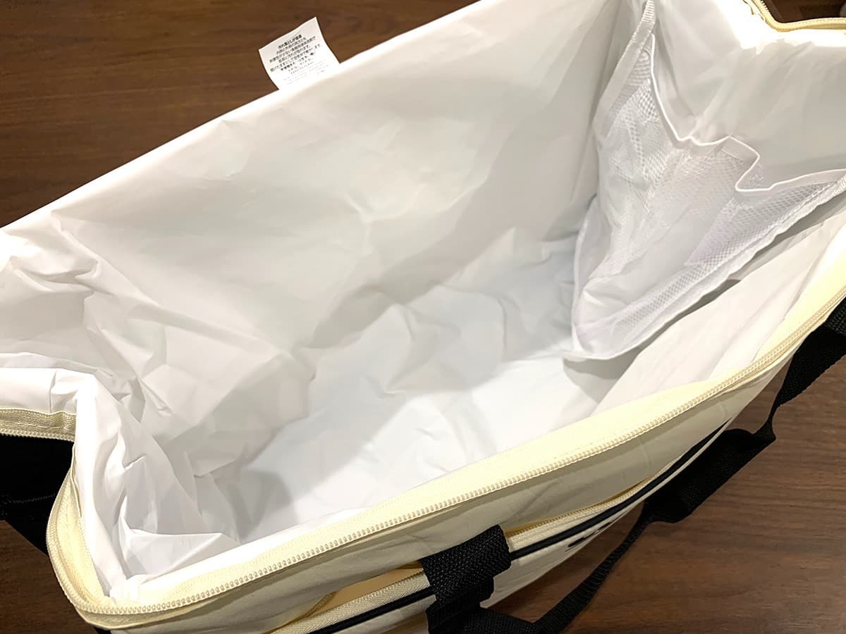 上部のチャックを開けると、コストコでまとめ買いしても余裕で商品が入る大容量空間が出現!