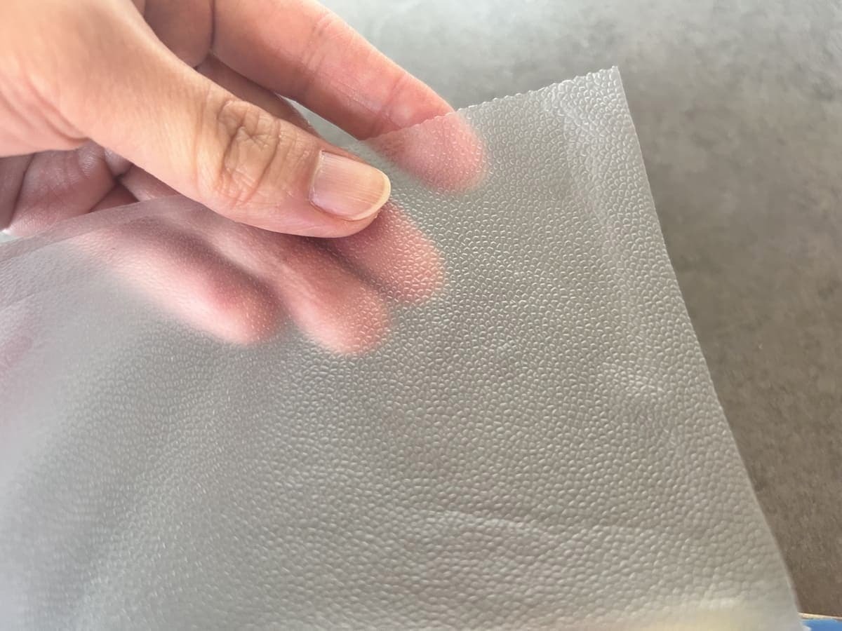 一見するとラップのようですが、手にとってみると独特のペラッとした感覚があり、単純なフィルムとは呼び難い不思議な存在。表面にツルツル感はなく細かなザラつきがあり、片面にシール機能が備わっています。