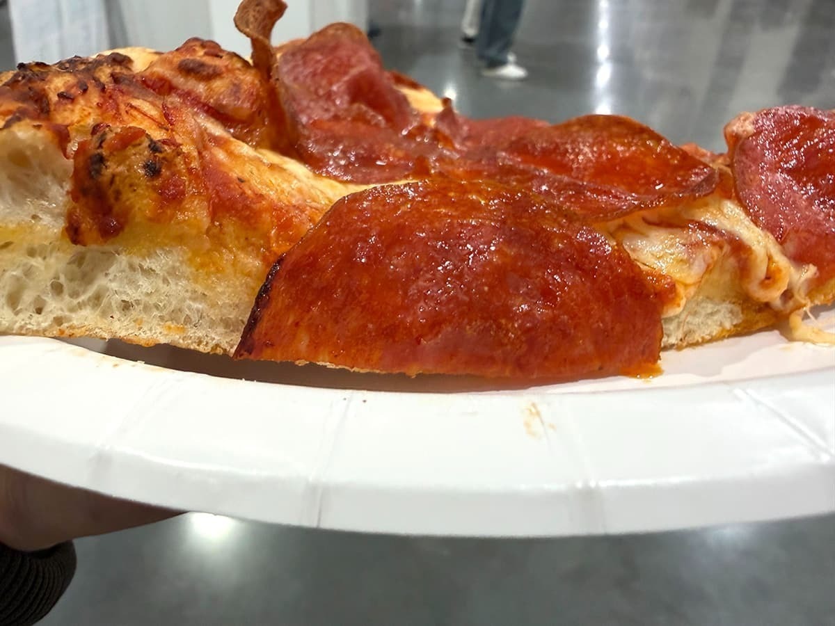 生地の上にペパロニがたっぷり乗った「ペパロニ スライスピザ」をご紹介します。